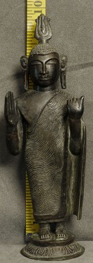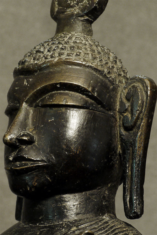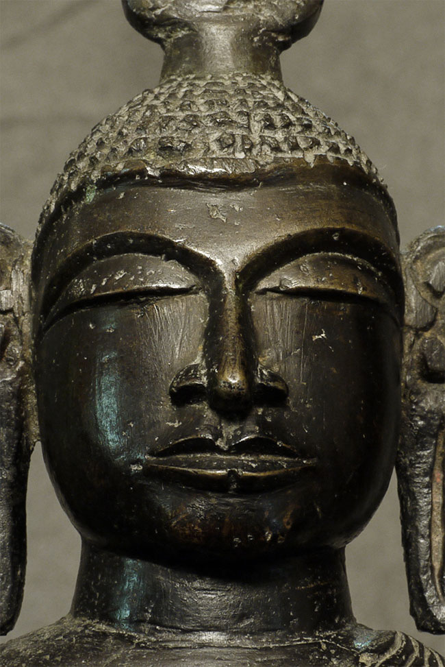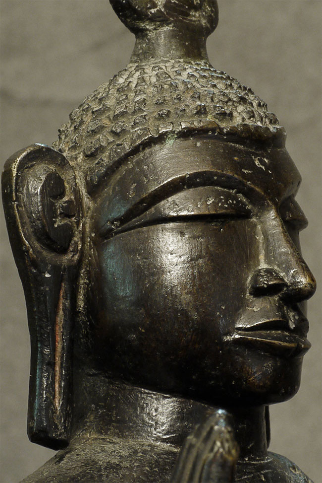Wonderful Antique Sri Lankan Buddha. Arms reattached. Stands 9.75 inches tall, and very heavy for its size.
