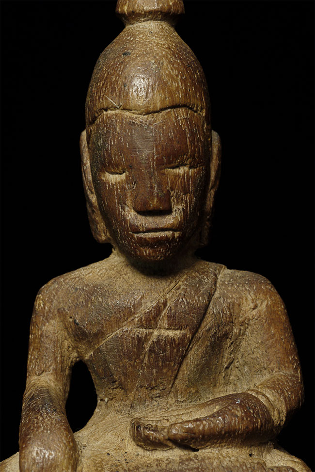 Delightful antique Folk Lao Buddha. Sits in deep meditation at 4.5 inches tall.