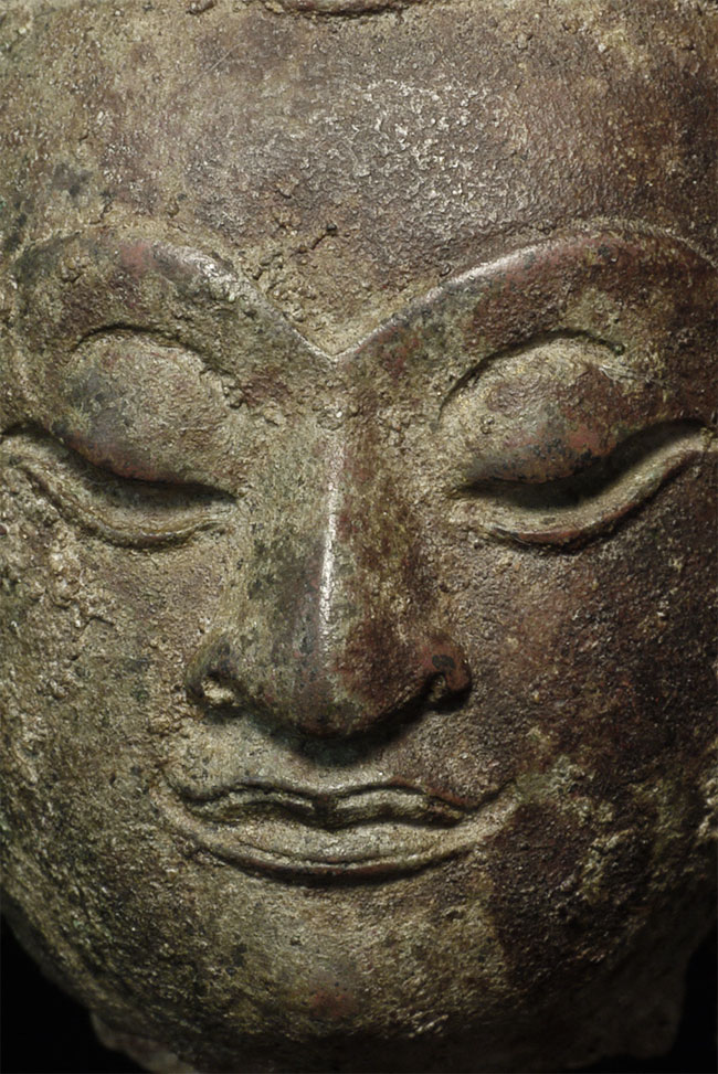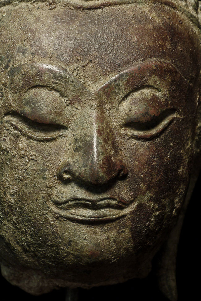 Finely cast 15/16thC Thai Bronze Buddha Head. Sits 3.5 inches tall and 5.5 inches tall on its custom base.