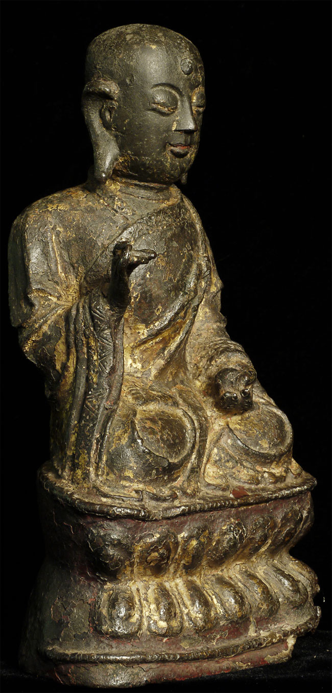 Exceptional 15/16thC Chinese Bronze Buddha teaching as a monk. Nice size at 7.75 inches tall.