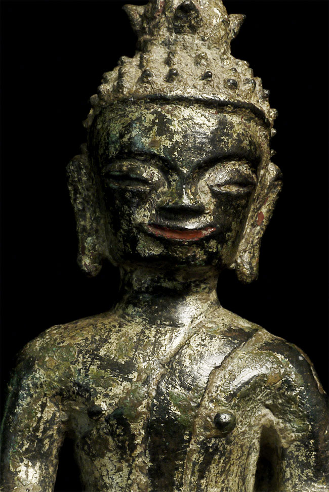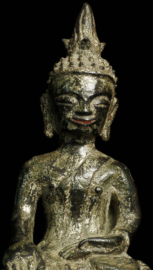 Unusual 16/17thC S.E. Asian Buddha, probably from the tribal area of Burma near where it meets Laos and Thailand. Sits 3.5 inches tall.