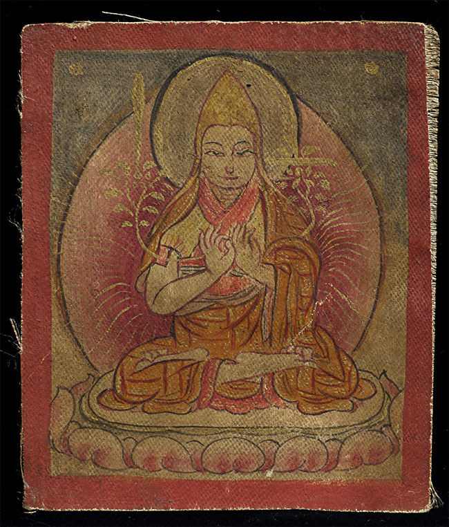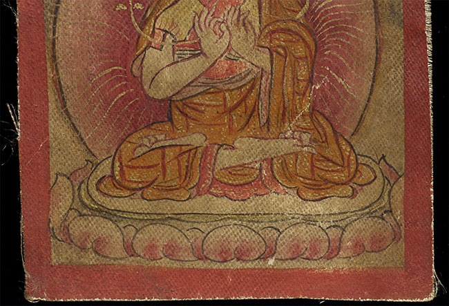 Small Older Mongolian Thangka. Measures 2" x 2.5"