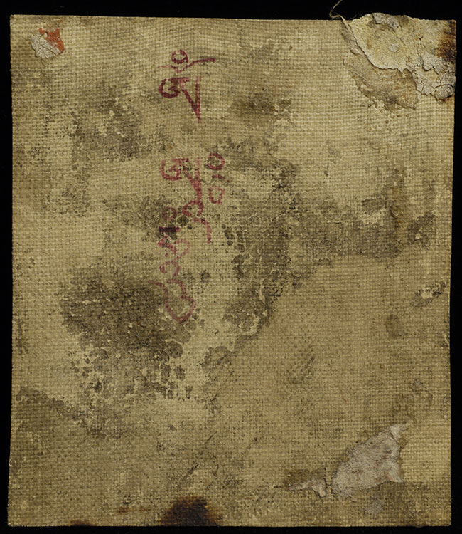 Very good antique Mongolian Thangka. Measures 2" x 2 1/8".