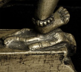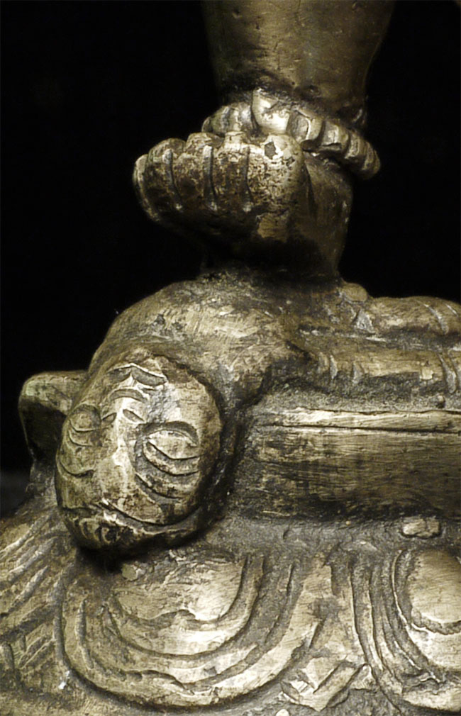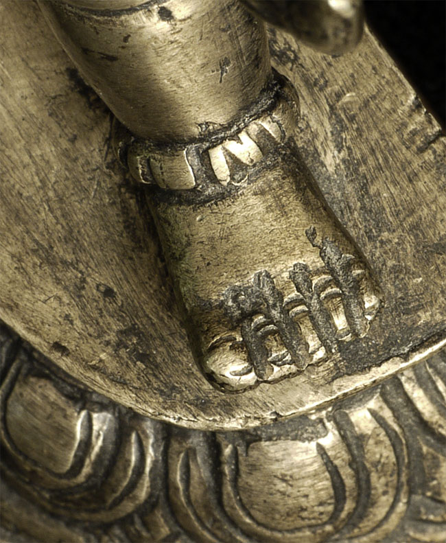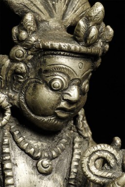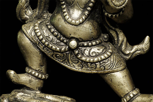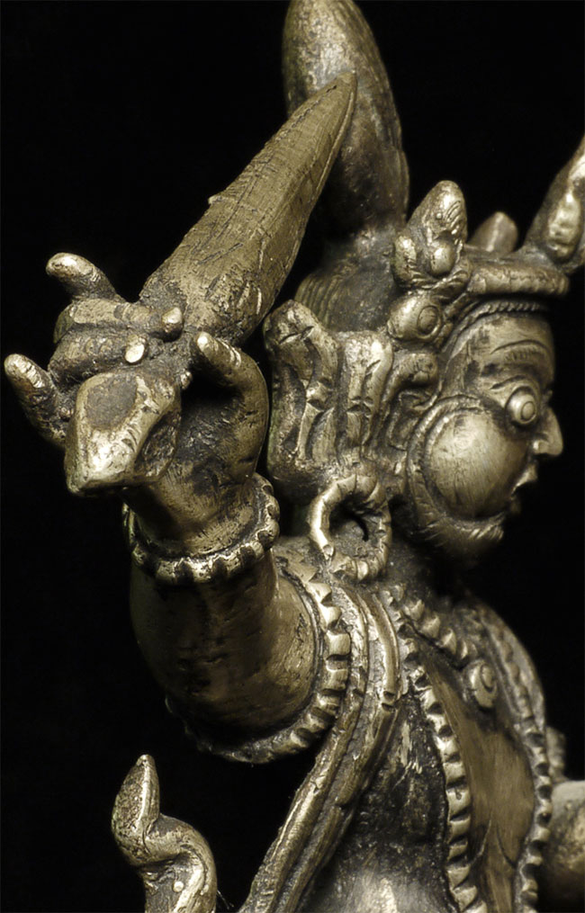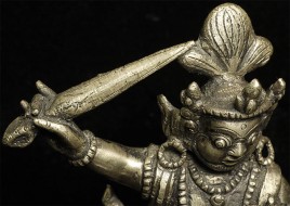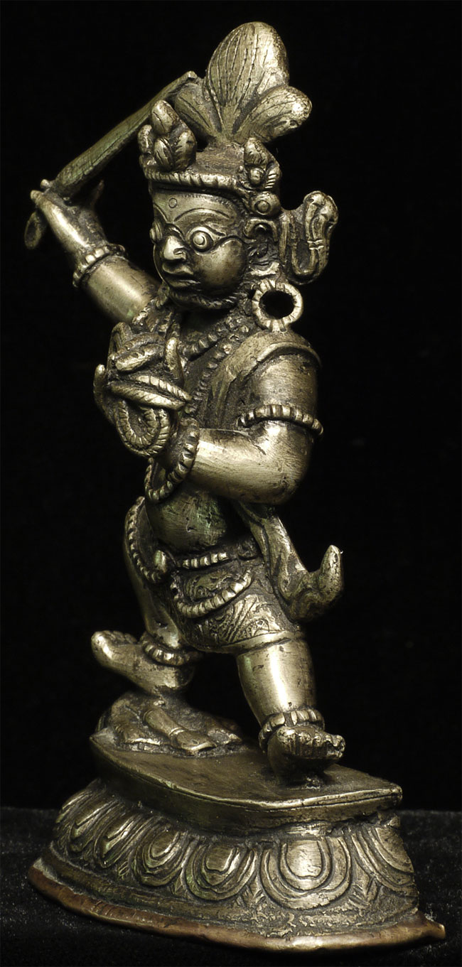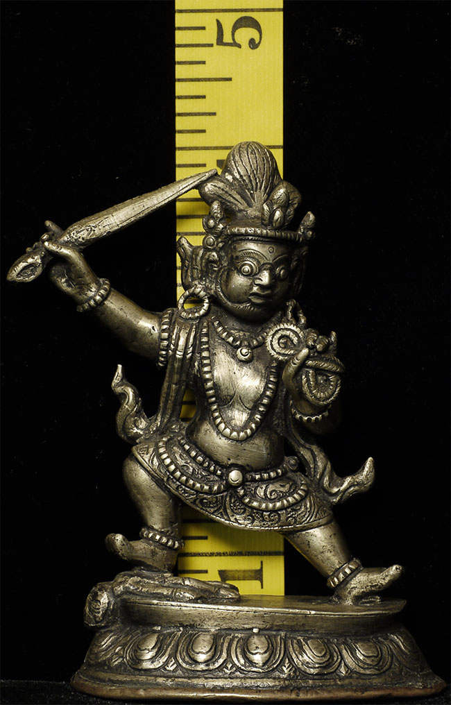 Nepalese figure cast out of bronze or other alloy. Stands 4 inches tall.