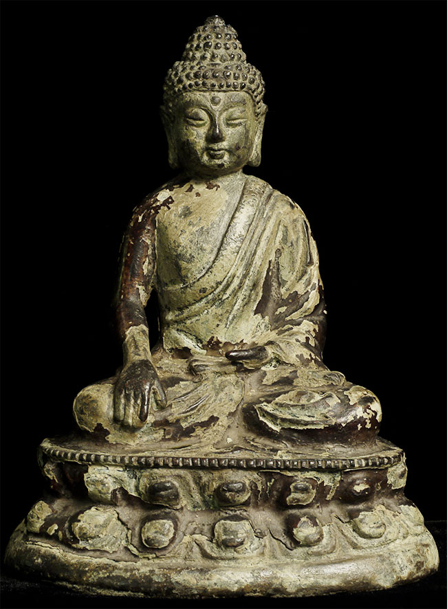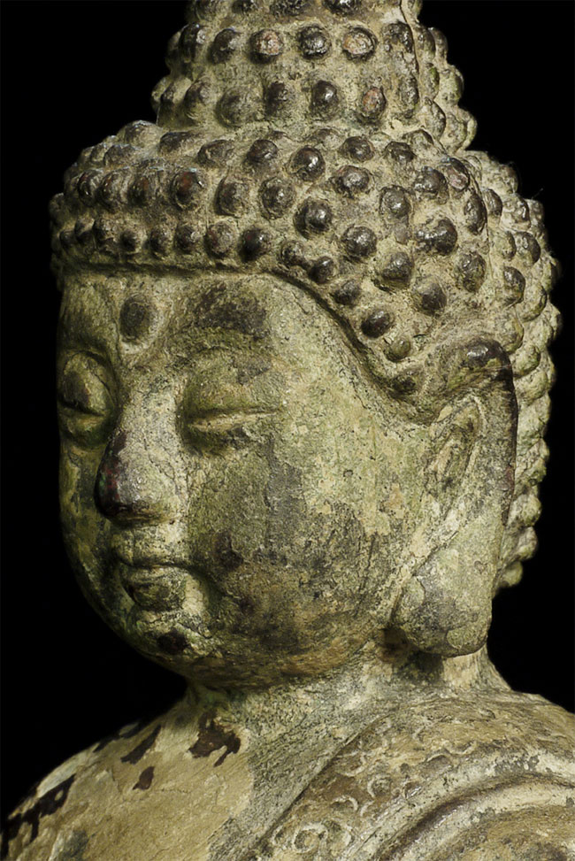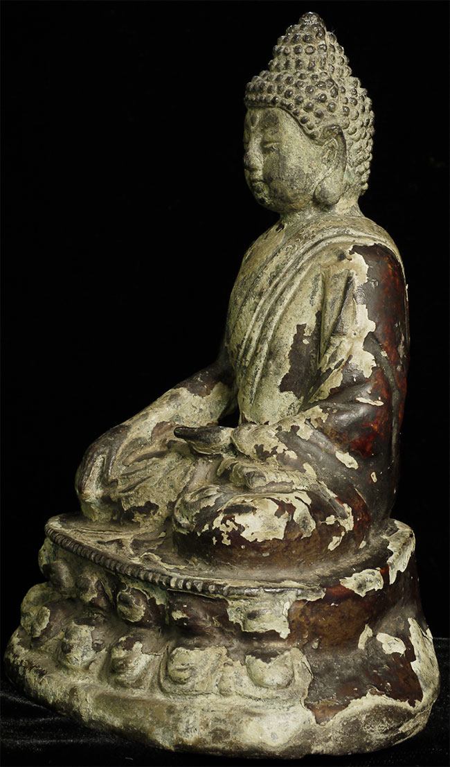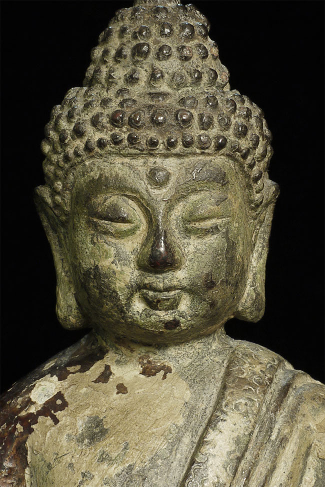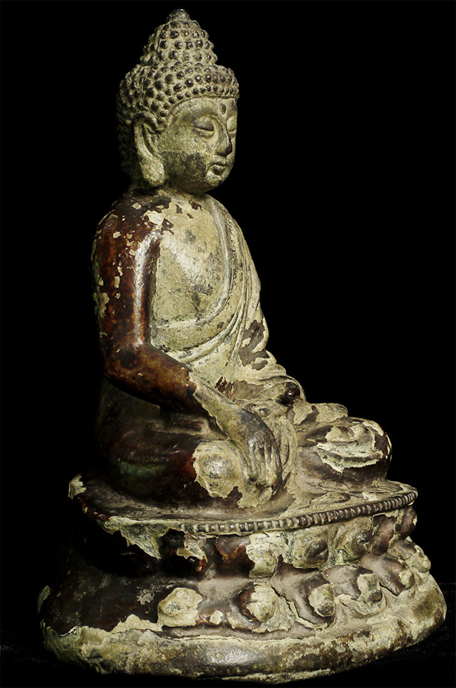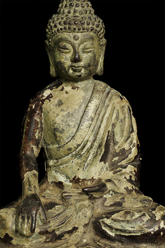 17/18thC or earlier Chinese Buddha. Great face. Loss to the back side of the base.
