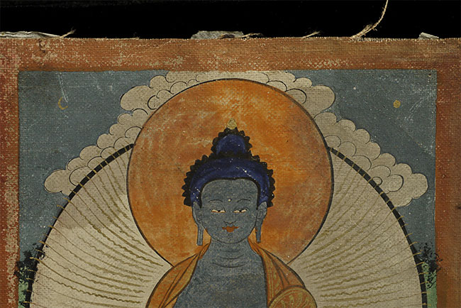 Outstanding Antique Mongolian Thangka. Measures 3 7/8" x 4 5/8"
