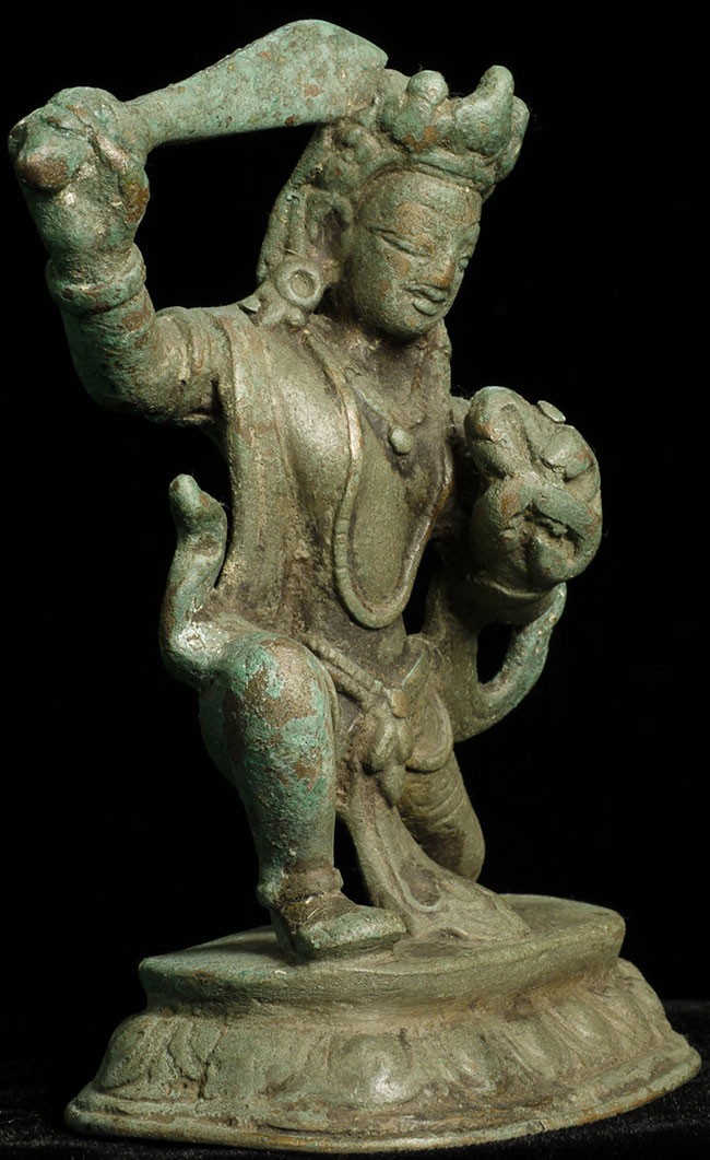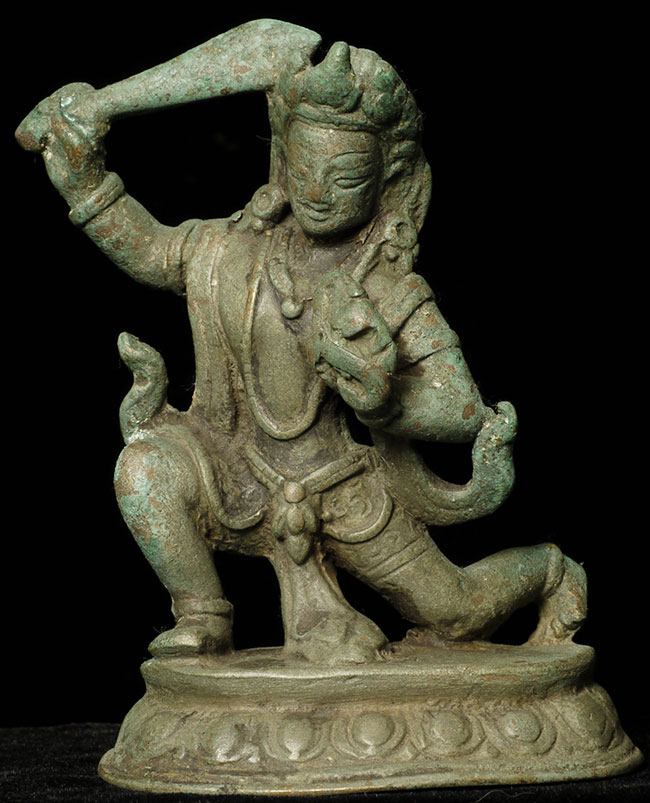 One of three Nepalese vintage/old Buddhist figures which came to me as a group. The previous owner believed they may have been in a fire at some point. Sits 4 inches tall