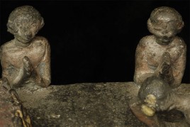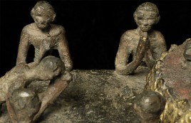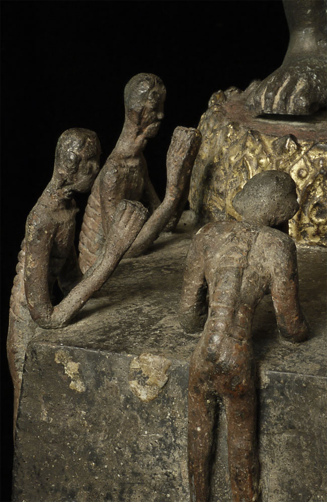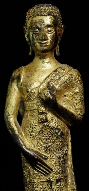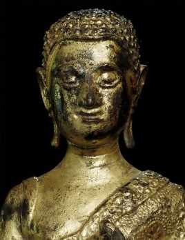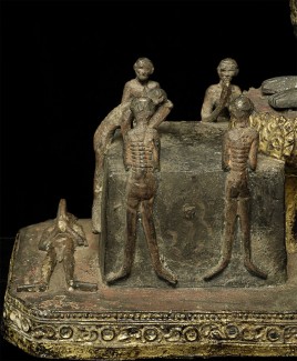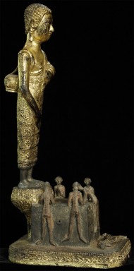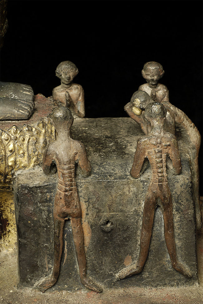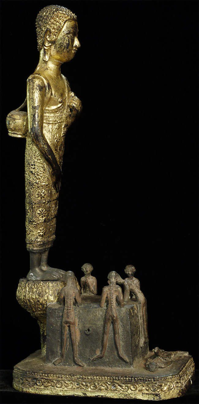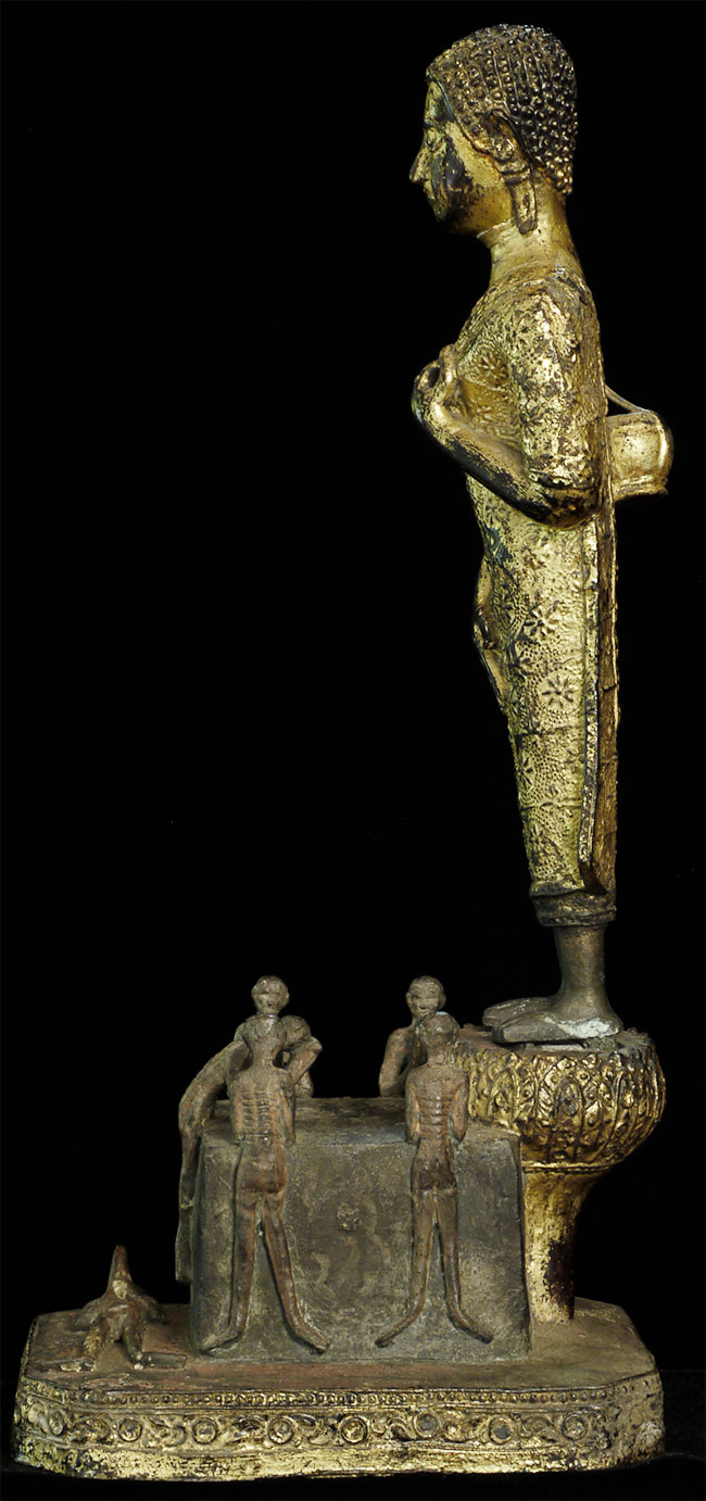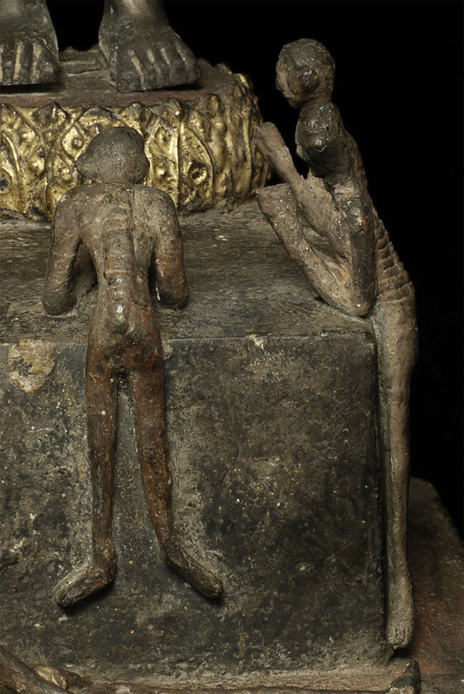 Very high quality 19thC Rattanakosin "Pra Malai" being tempted by demons while on his journey. A distinctively Thai style subject. Large example of its type at 15.5" tall, base measures 5" x 7".