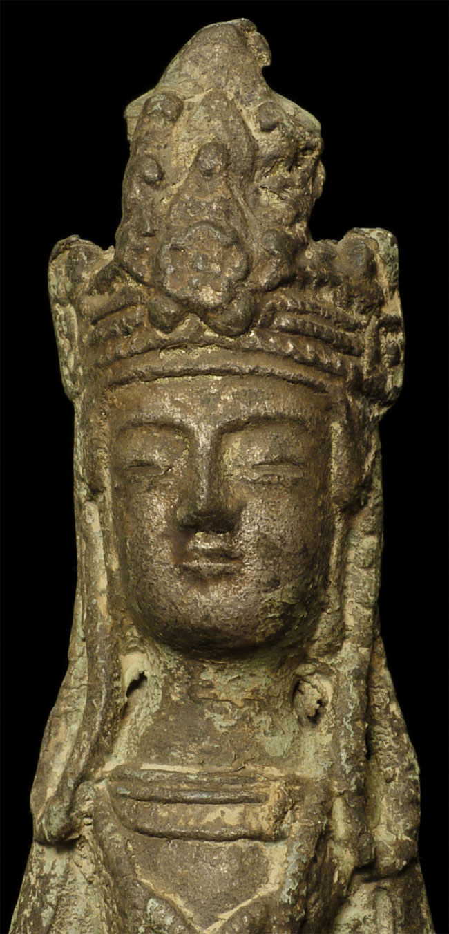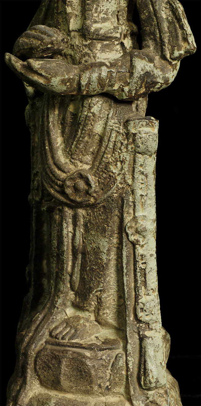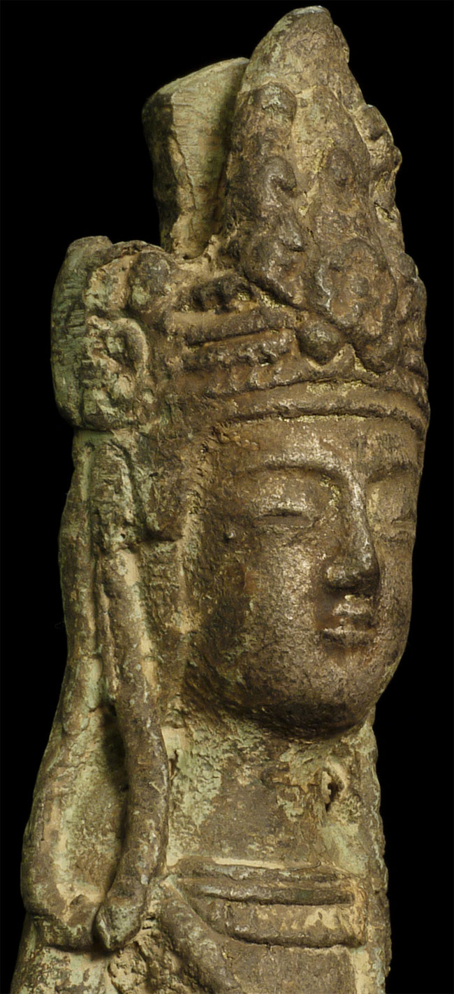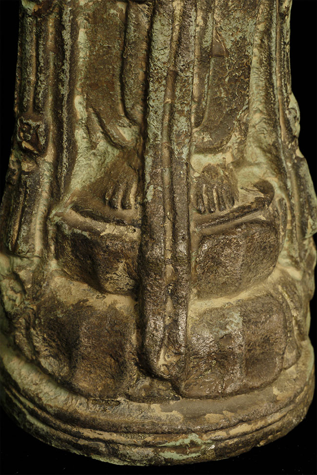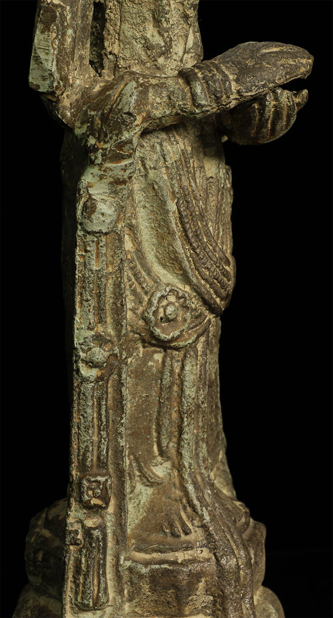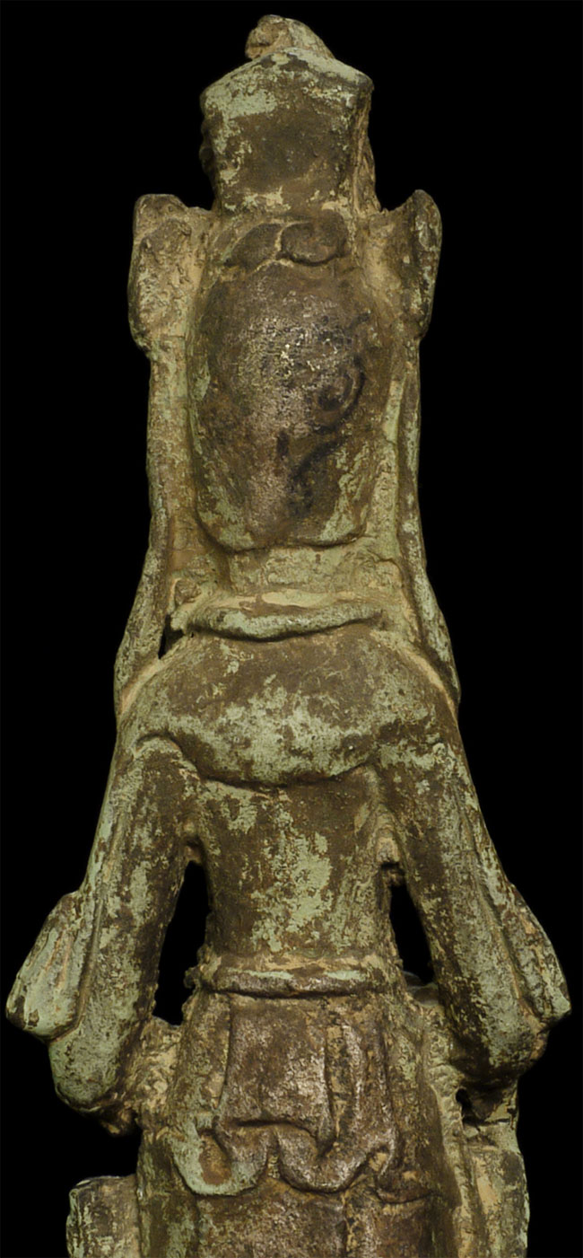 A Korean beauty- Bronze with traces of gilding. In a very early style (9-11thC?). Hard to date- at least 19thC or earlier. Collected in the 1950’s by previous owner. Has traces of lacquer. Stands 8 7/8 inches tall.