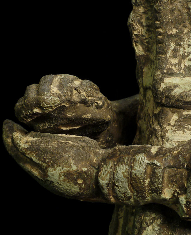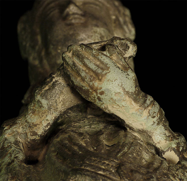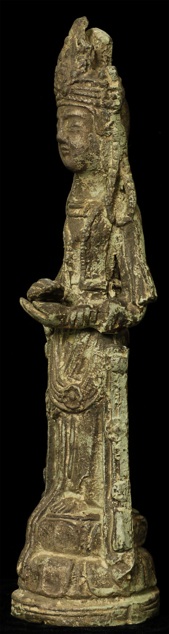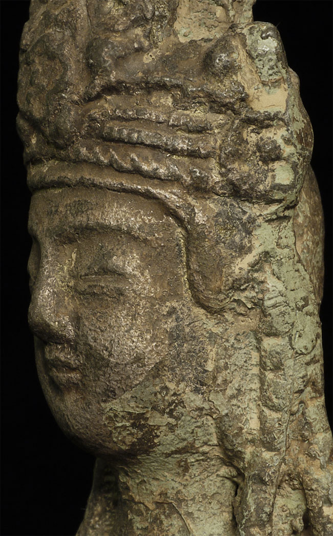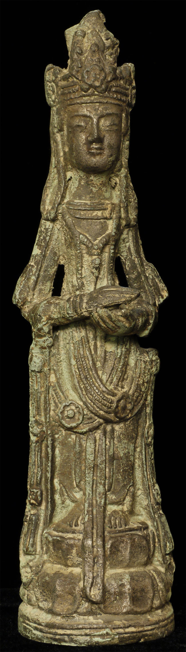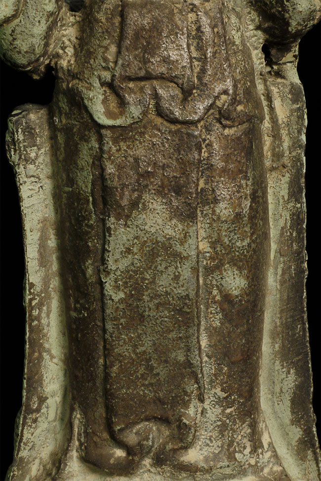 A Korean beauty- Bronze with traces of gilding. In a very early style (9-11thC?). Hard to date- at least 19thC or earlier. Collected in the 1950’s by previous owner. Has traces of lacquer. Stands 8 7/8 inches tall.