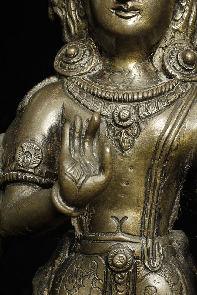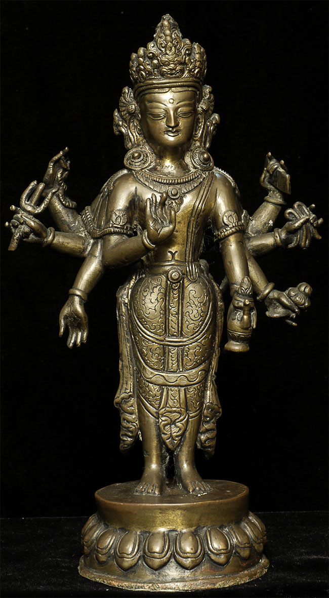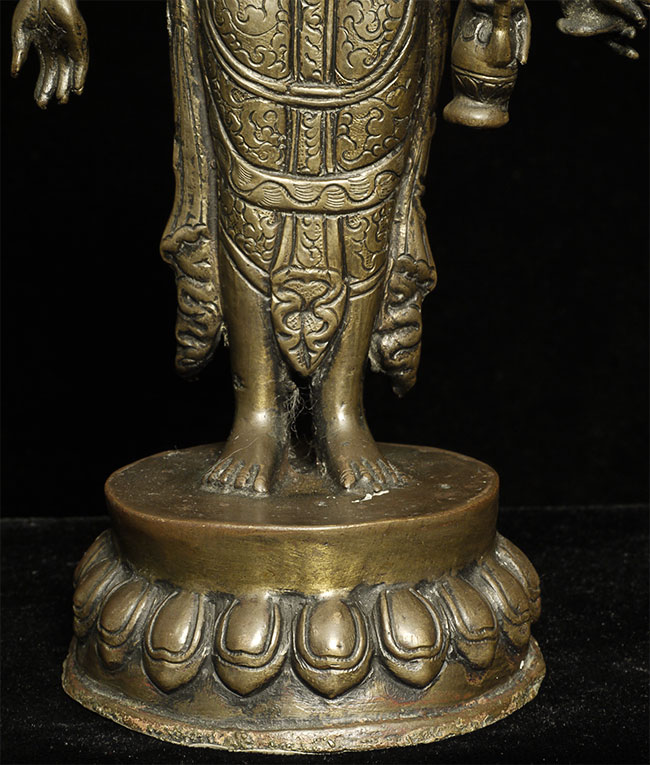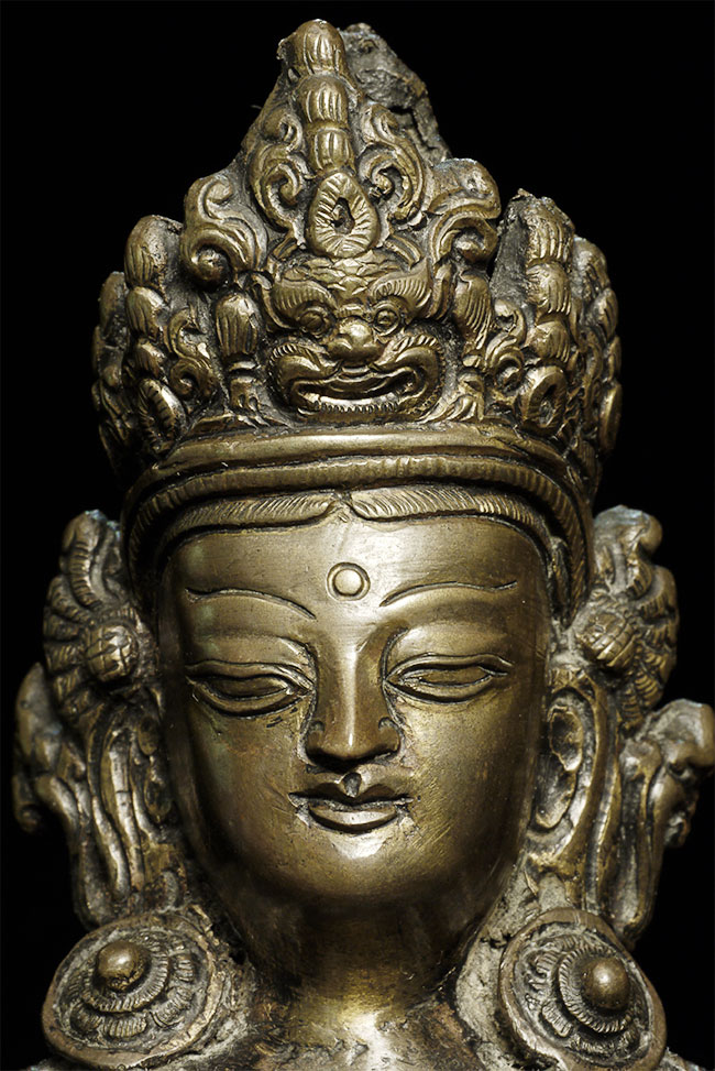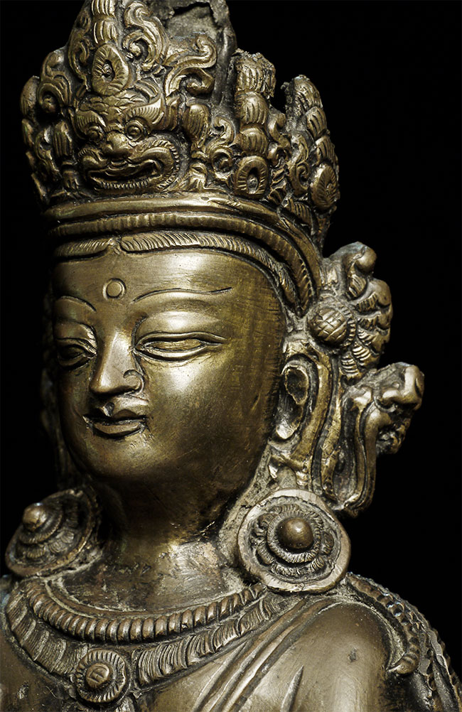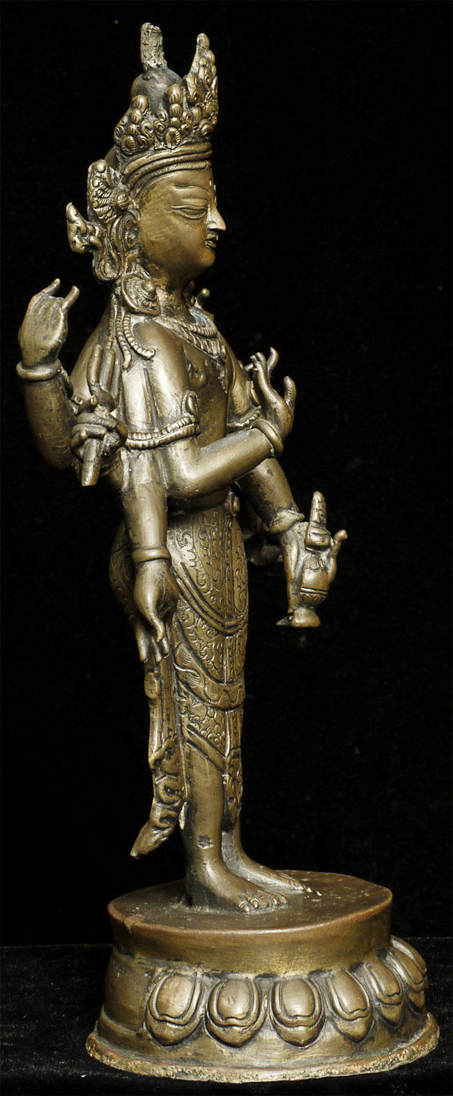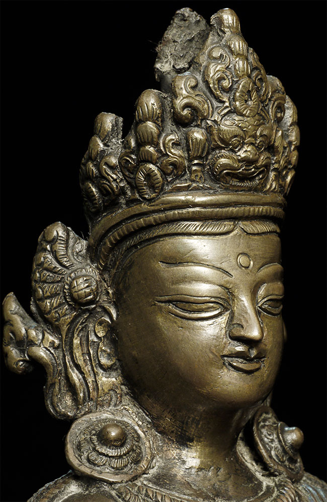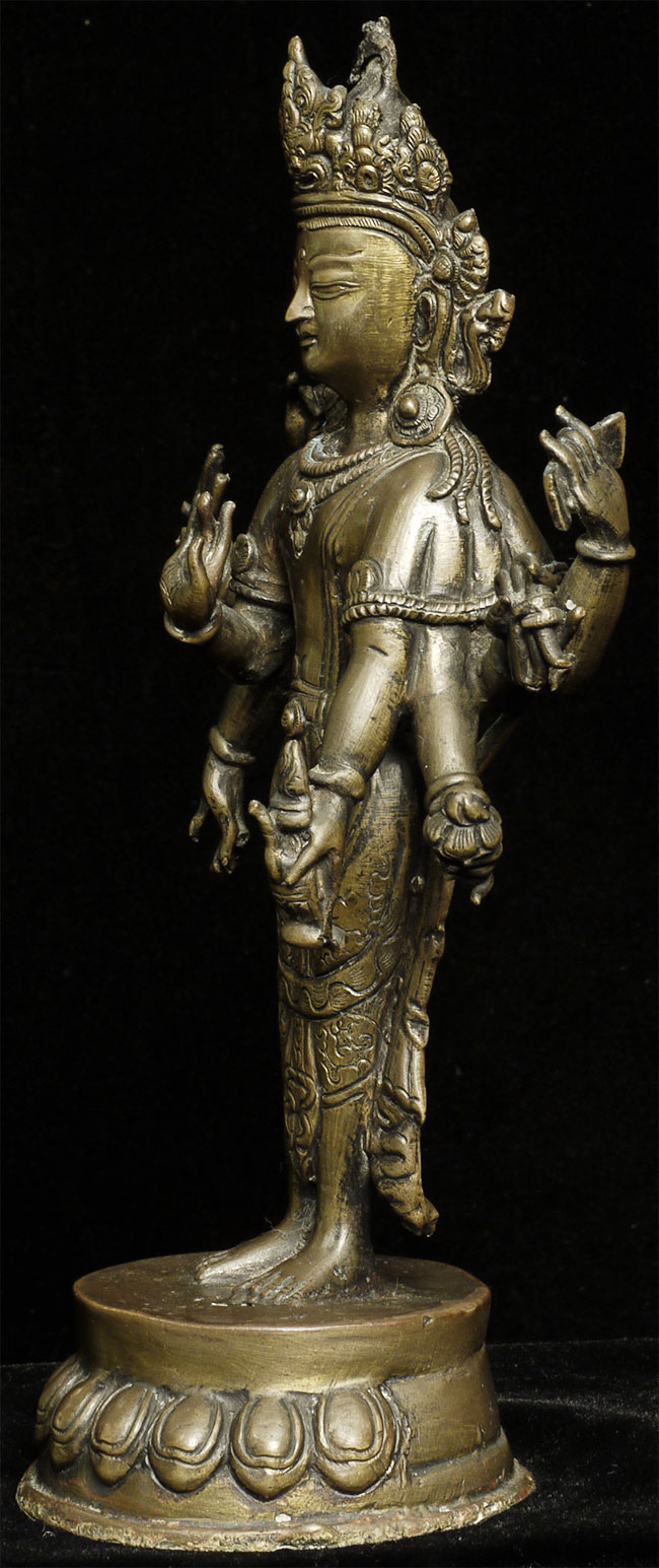 Antique Bhutanese Bodhisattva collected in 1964 in Bhutan by an an early visitor to the kingdom. 8.25" tall.