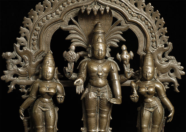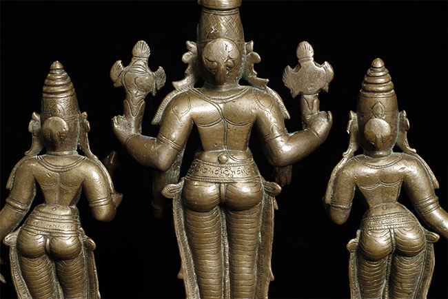18/19thC Hindu Trilogy. Large and complete at 14.75 inches tall, width of 10.25 inches, depth of 4.25 inches. Lots of exquisite detail!