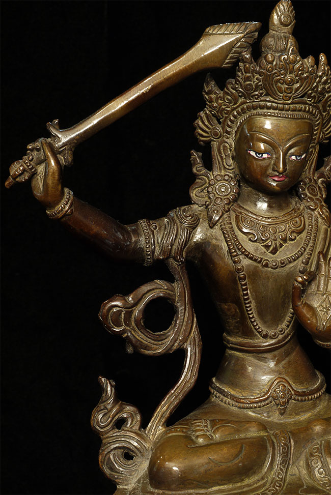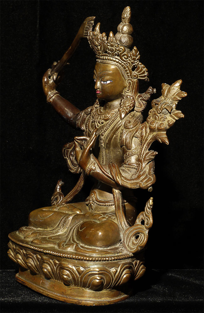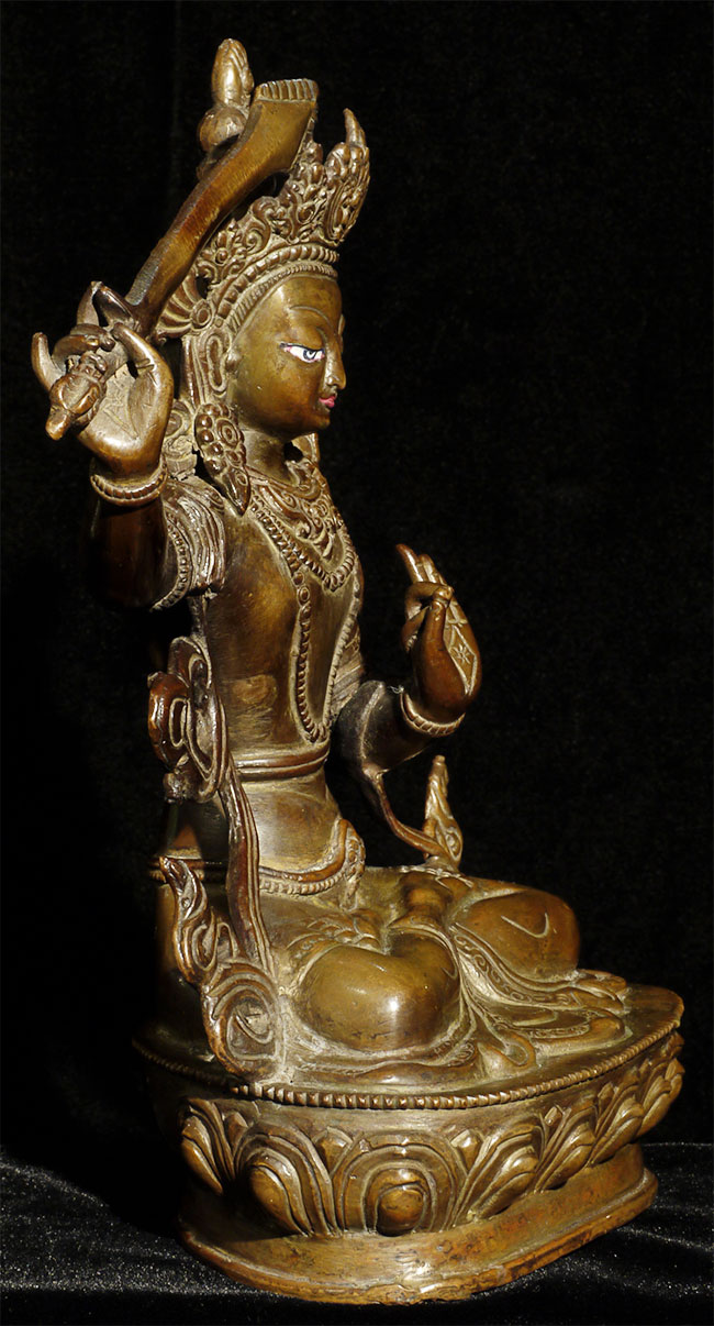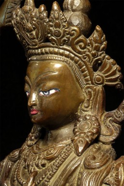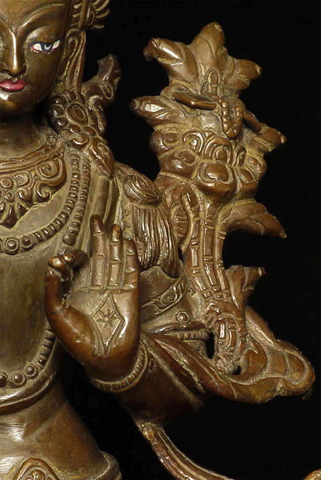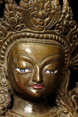 Vintage Nepalese or Tibetan Bodhisattva. Wonderful face. 8.5 inches tall, approximately 7.5 inches at widest point, 3 1/8 inch deep