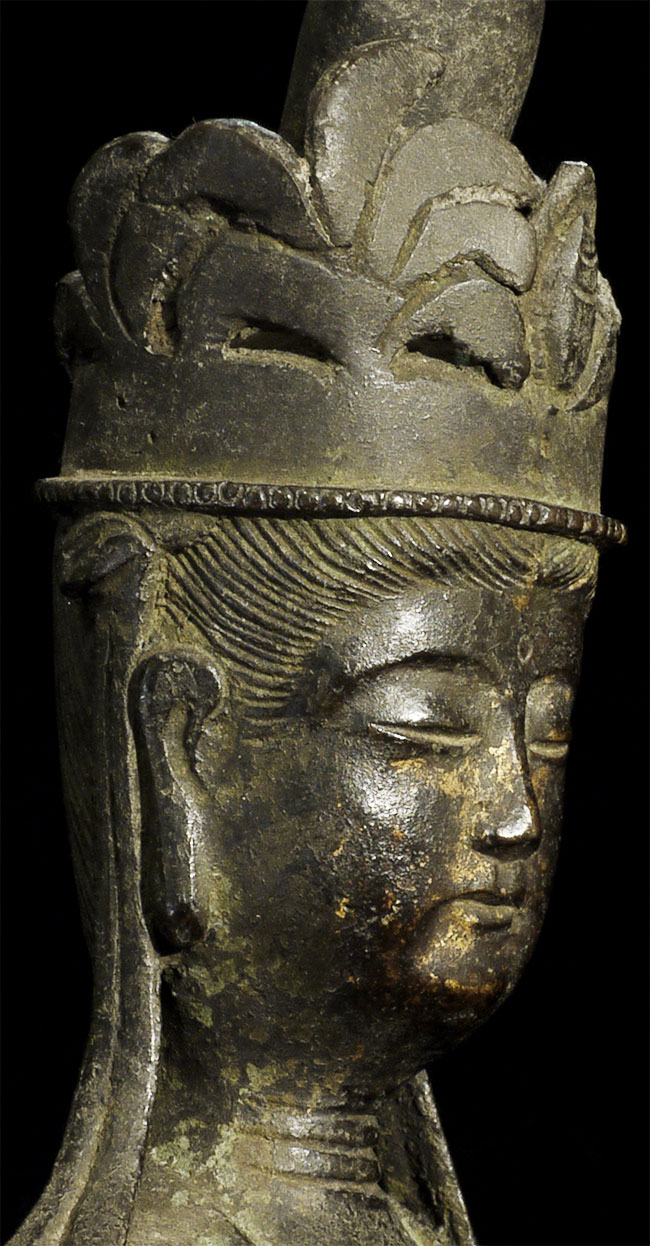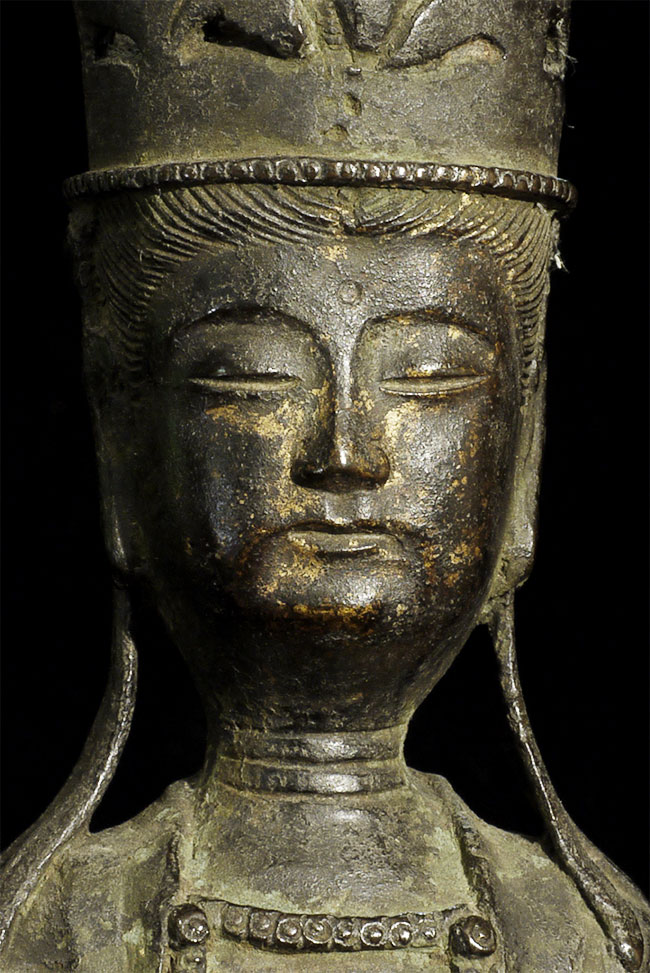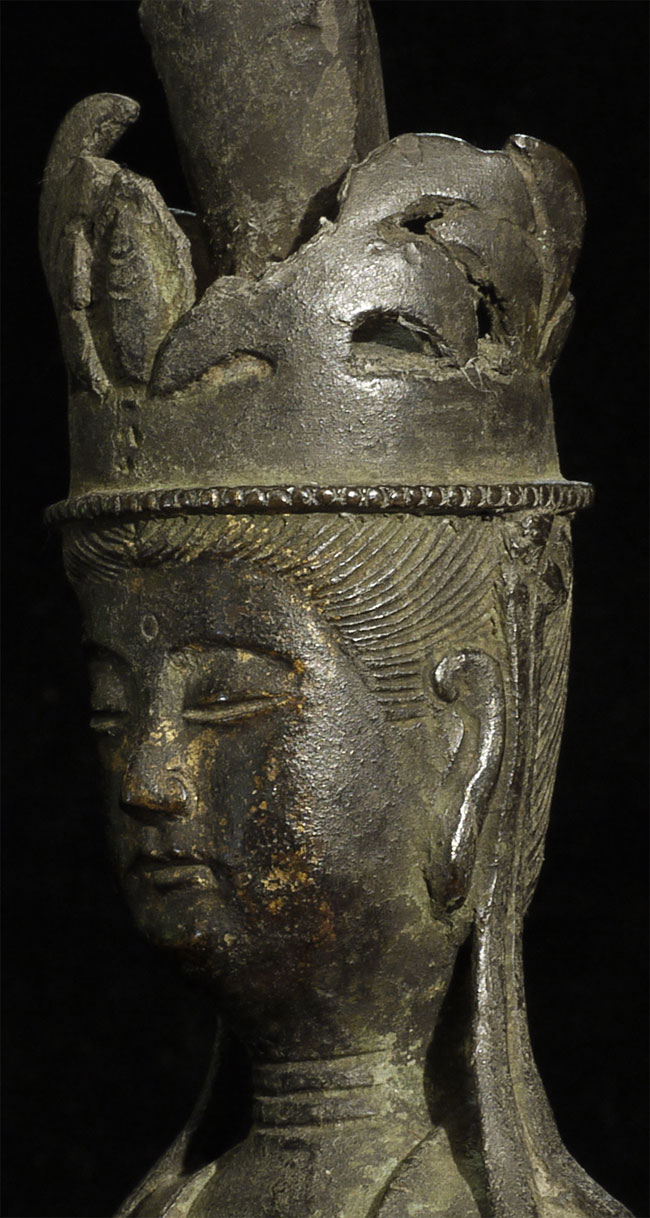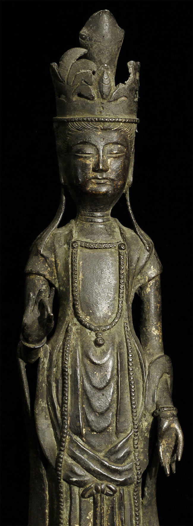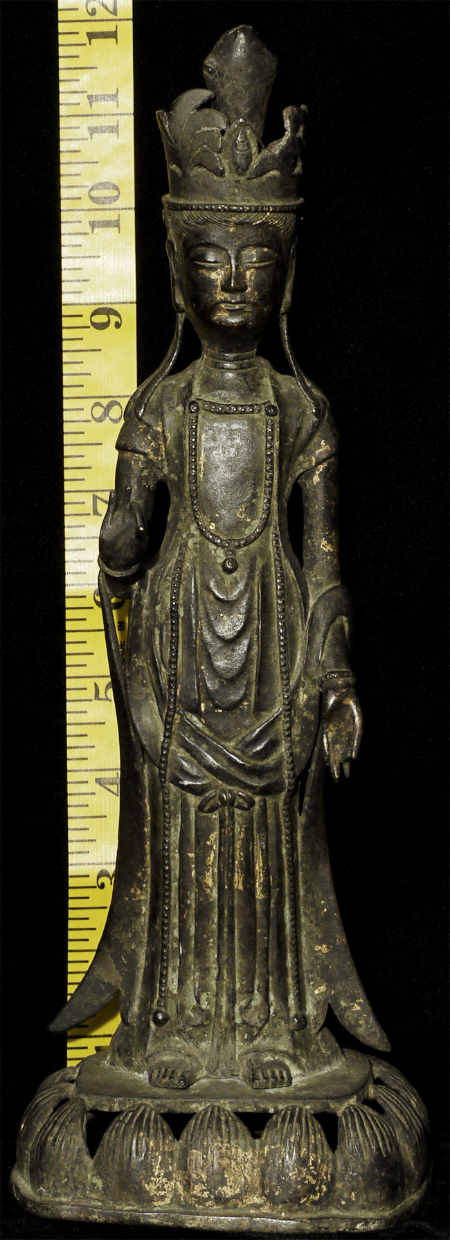 19thC or earlier Korean Bronze Buddha. Wonderful face. Some loss to crown. Nice size at 12 inches tall.