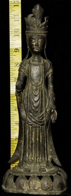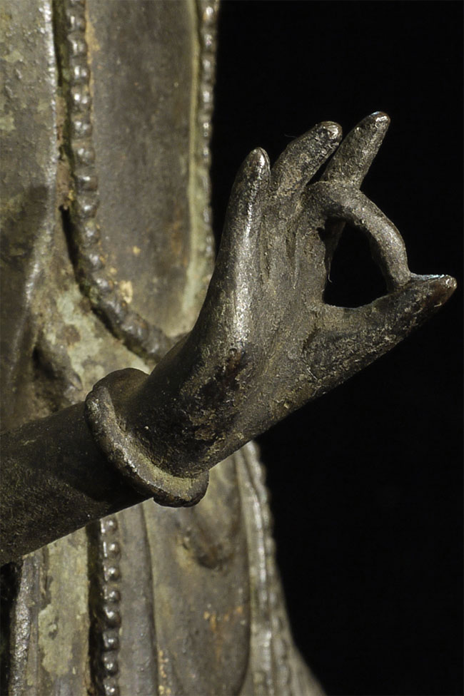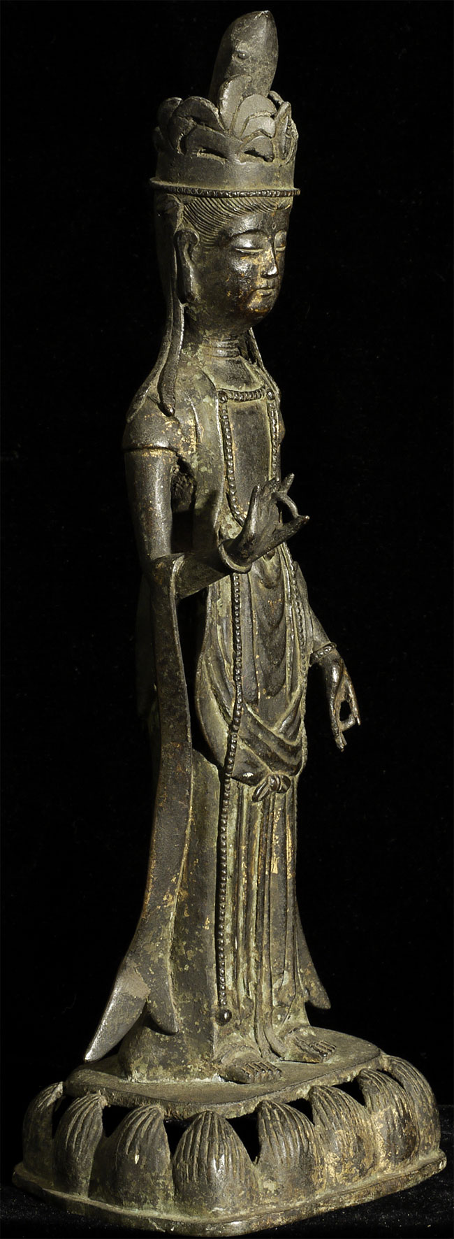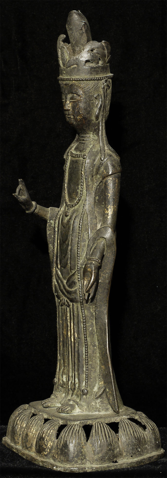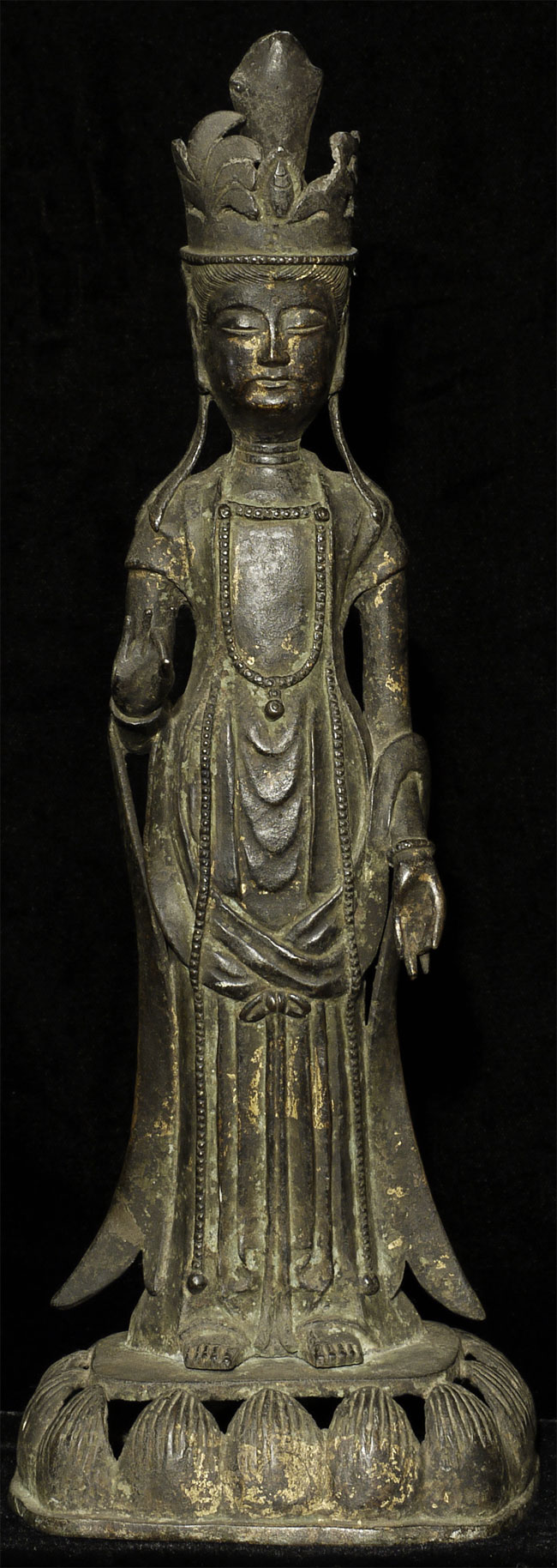 19thC or earlier Korean Bronze Buddha. Wonderful face. Some loss to crown. Nice size at 12 inches tall.