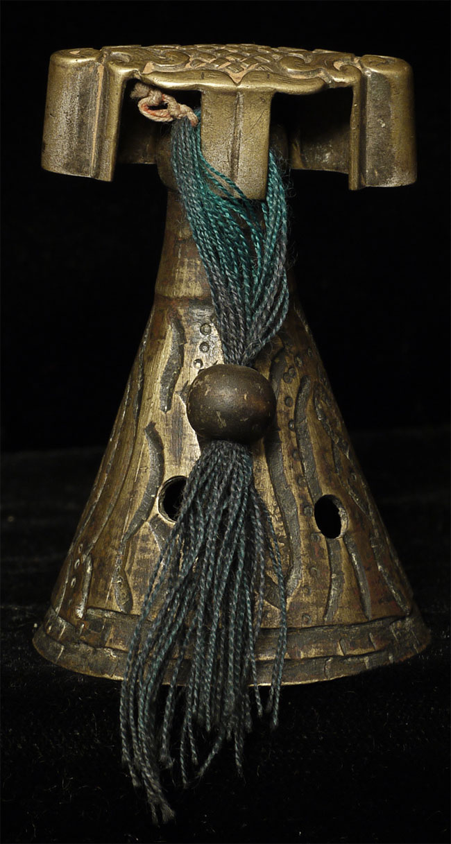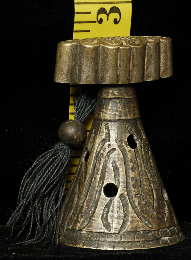 Old Mongolian auspicious symbol altar piece. 2.25" tall, diameter of 1.75 inches