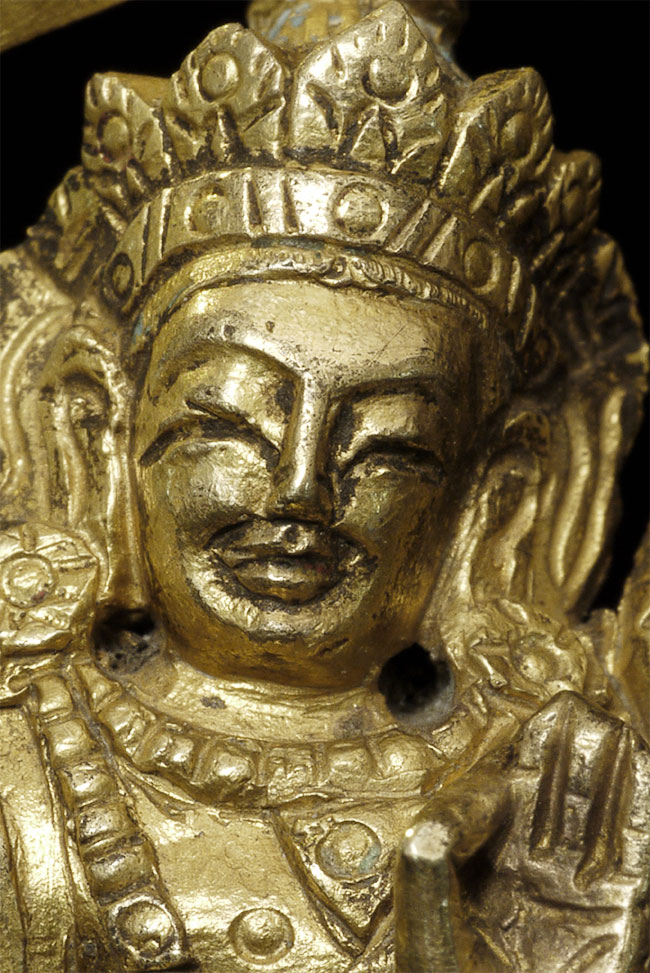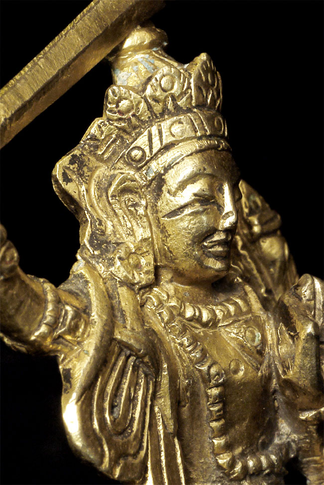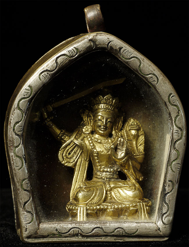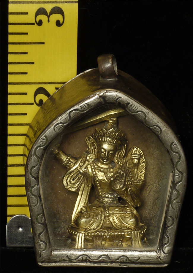 Antique Mongolian or Tibetan Bodhisattva in Gau box is 2.25 inches tall, the Figure alone is 1 5/8 inches. Collected in the 1970's by a San Francisco collector.
