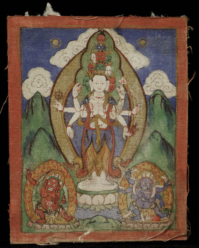 Vintage Mongolian Thangka. Measures 2 7/8 x 3.5 inches