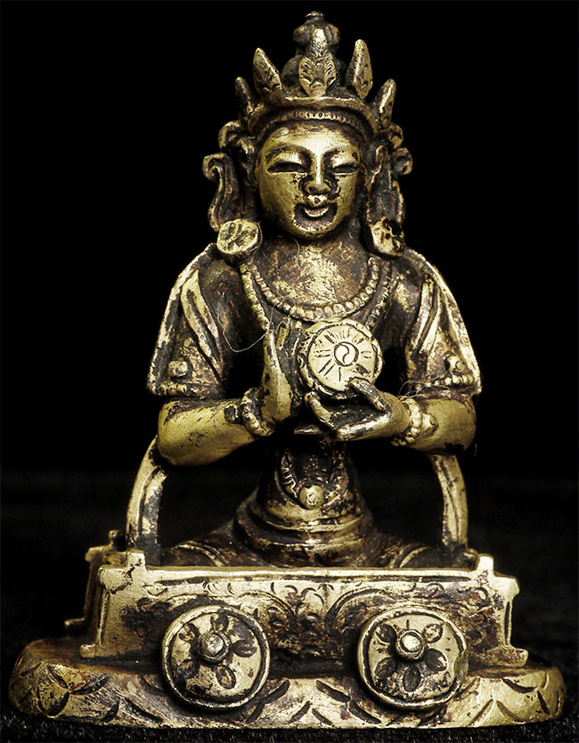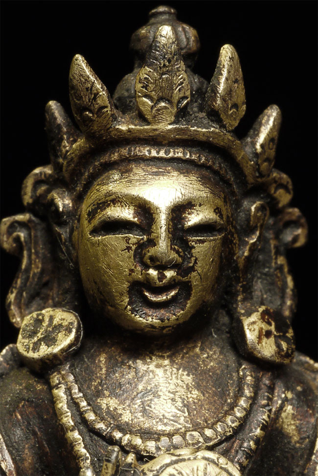 Antique Mongolian or Tibetan Bodhisattva. Collected in the 1970's by a San Francisco collector. 1.5 inches tall. Unusual solid- cast type. Good age.