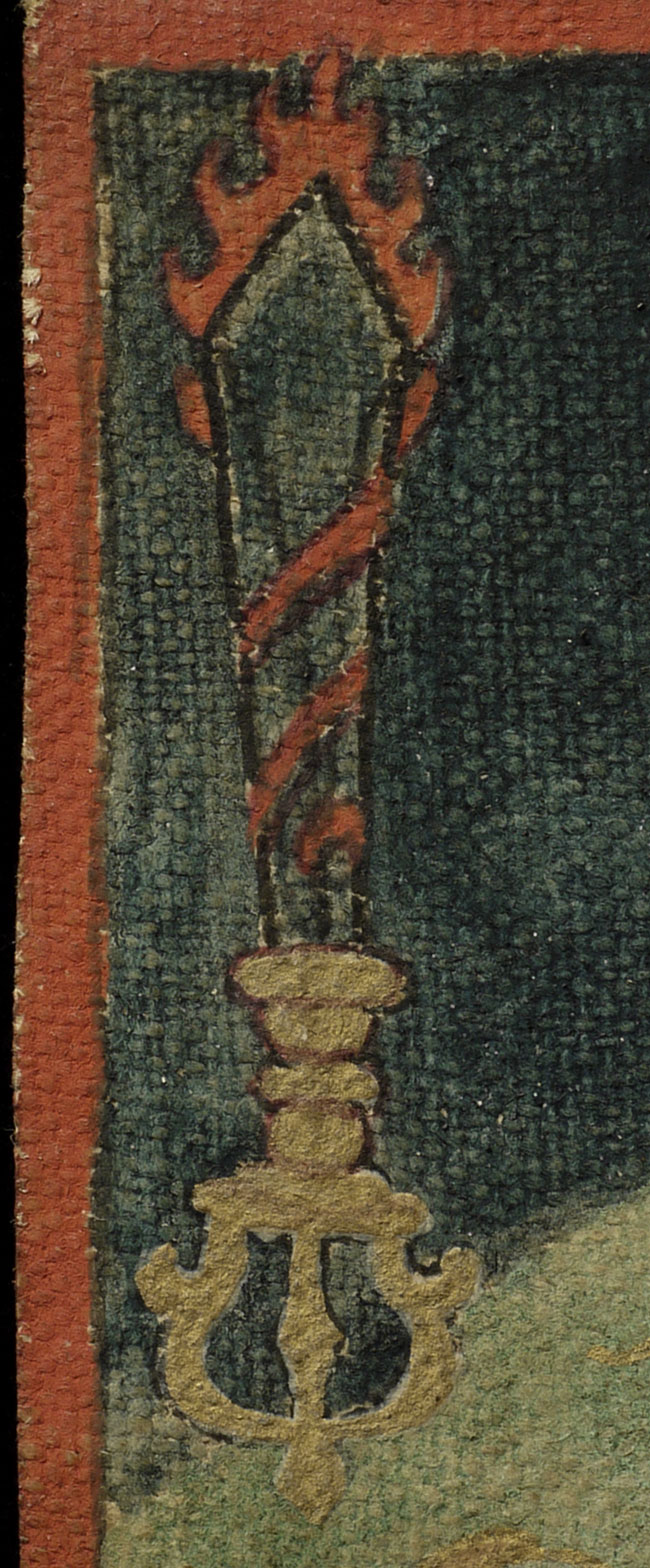 Antique Mongolian Miniature Thangka with auspicious symbols. Measures 2 x 2.5 inches.