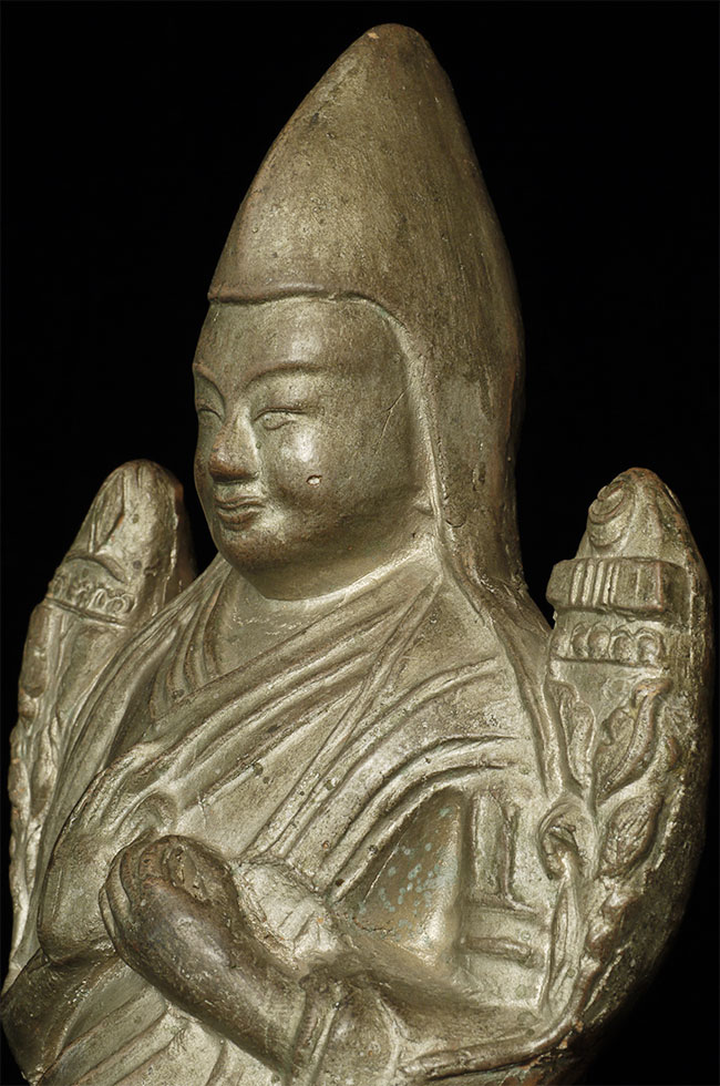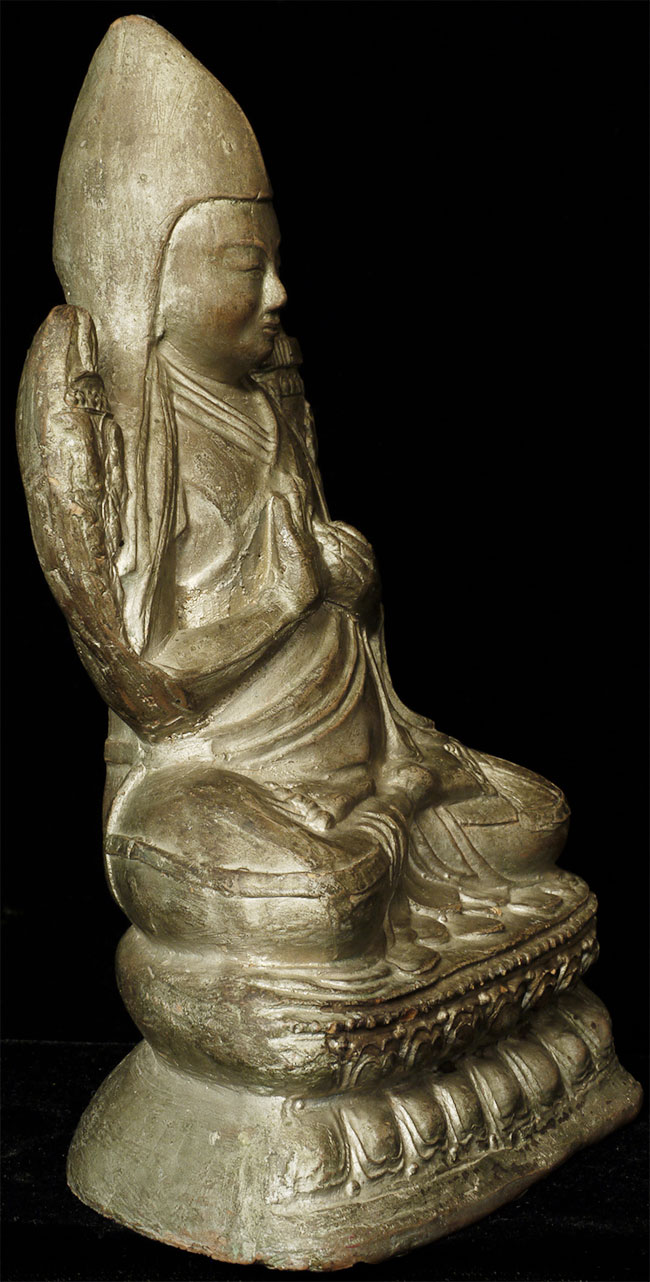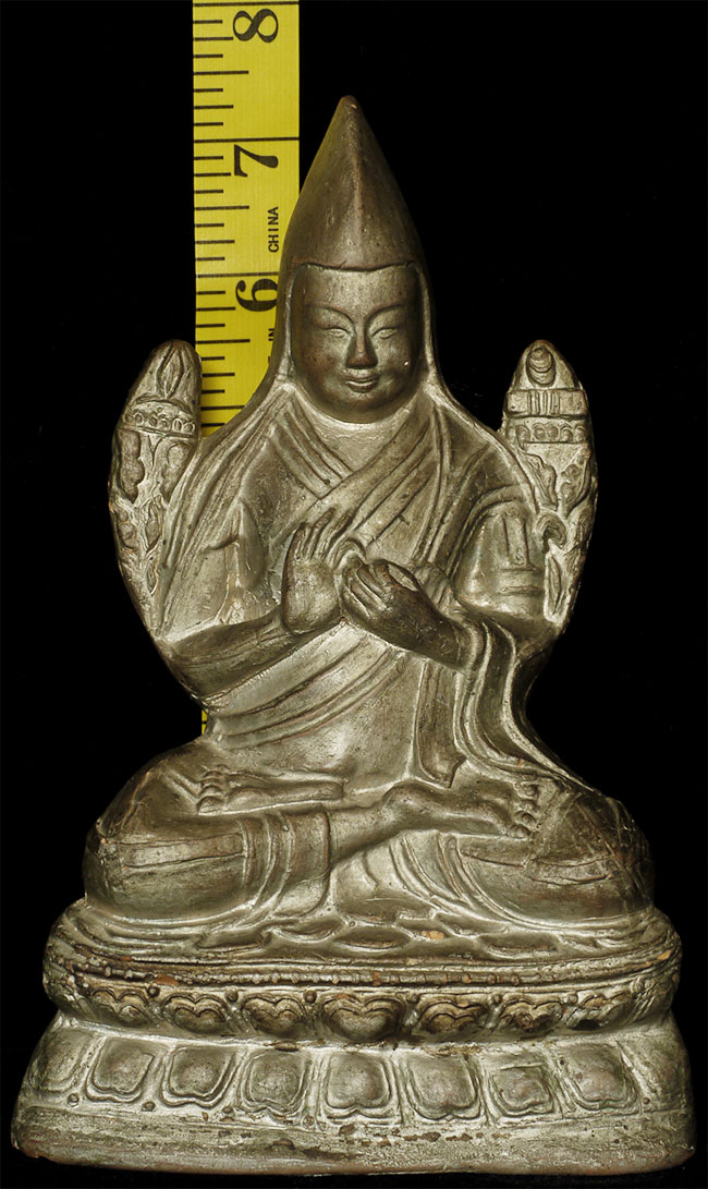 Vintage/old very high quality gilded terracotta Mongolian sculpture of Tsong-Ka-Pa. 7.25" tall.