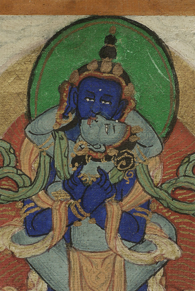 Antique Mongolian Thangka. Measures 2.5 x 2 5/8 inches. Very nice example.