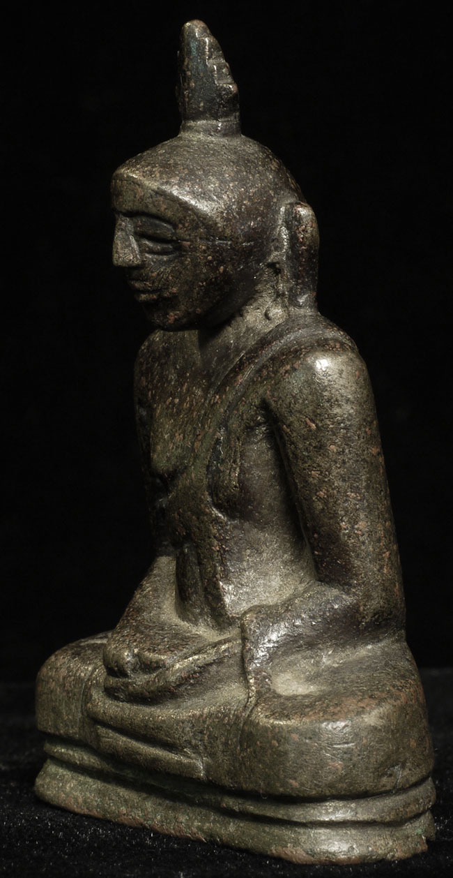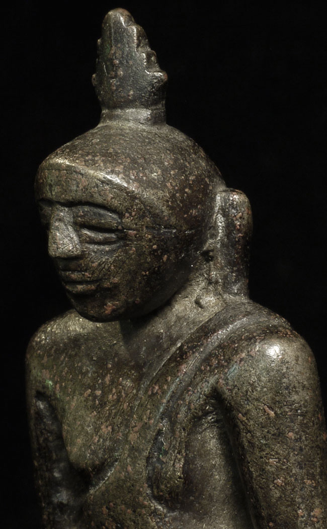 Very nice solid cast bronze Devided Kingdoms Lankan Buddha. Quite uncommon. Fascinating face. Sits 2.75 inches tall