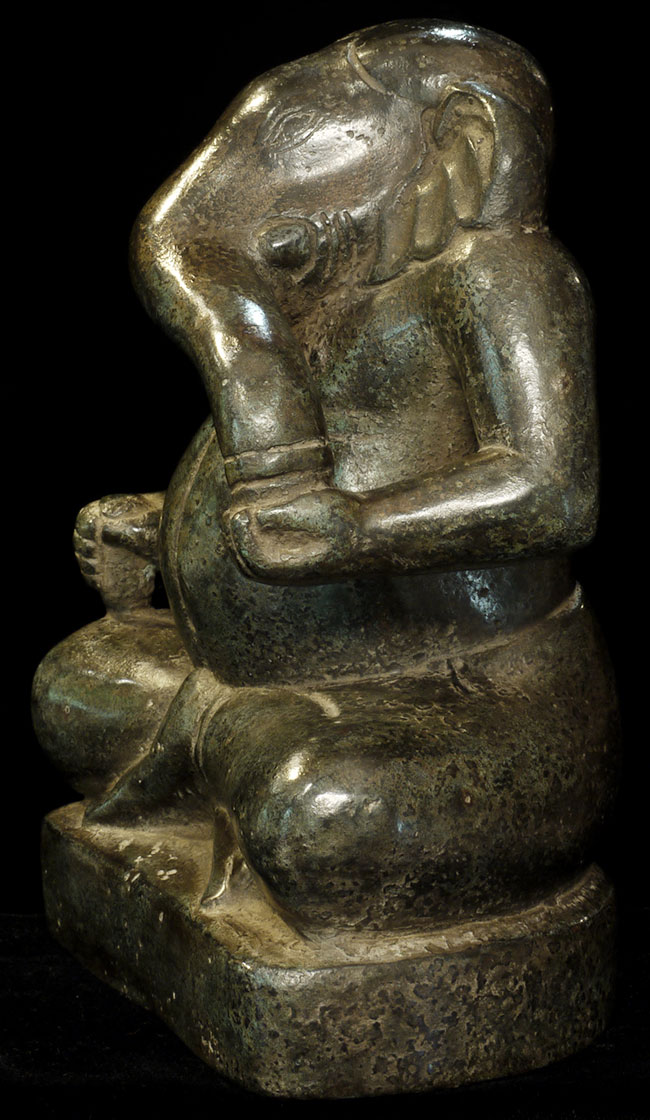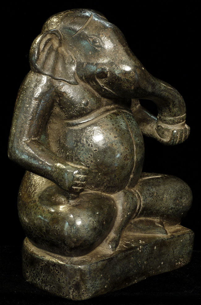 Bronze Ganesh. Unsure of country of origin or age. Substantial at 6 7/8 inches tall, 5.25 inches wide, 3 3/8 inches deep