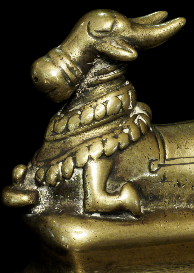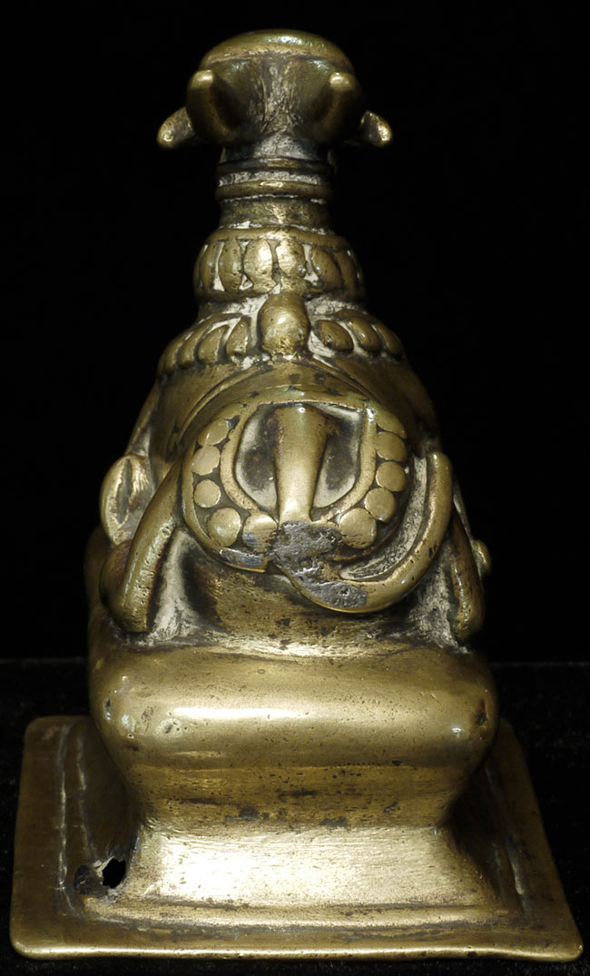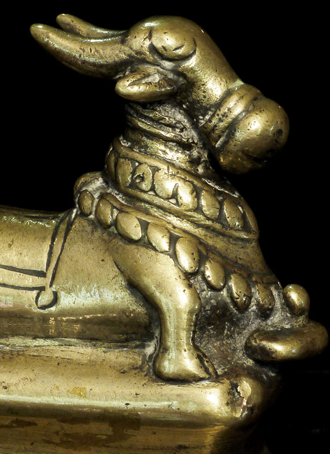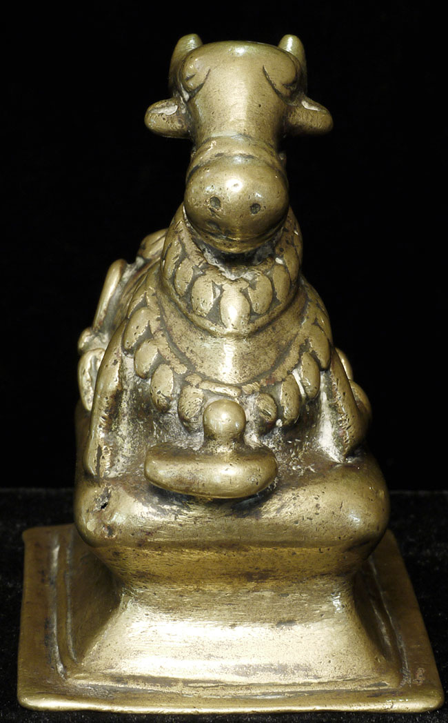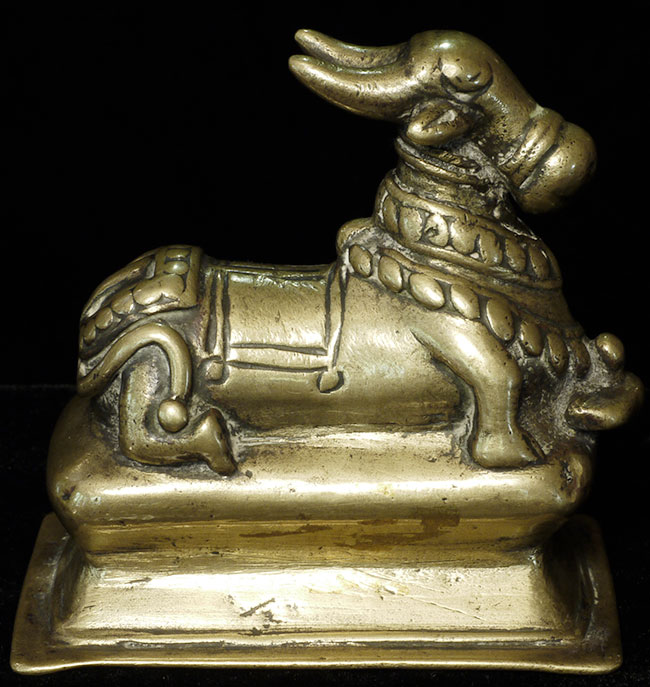 Lively antique Nandi with exceptional personality. Measures 3.5 inches tall, 3.5 inches deep, 2.25 inches wide.