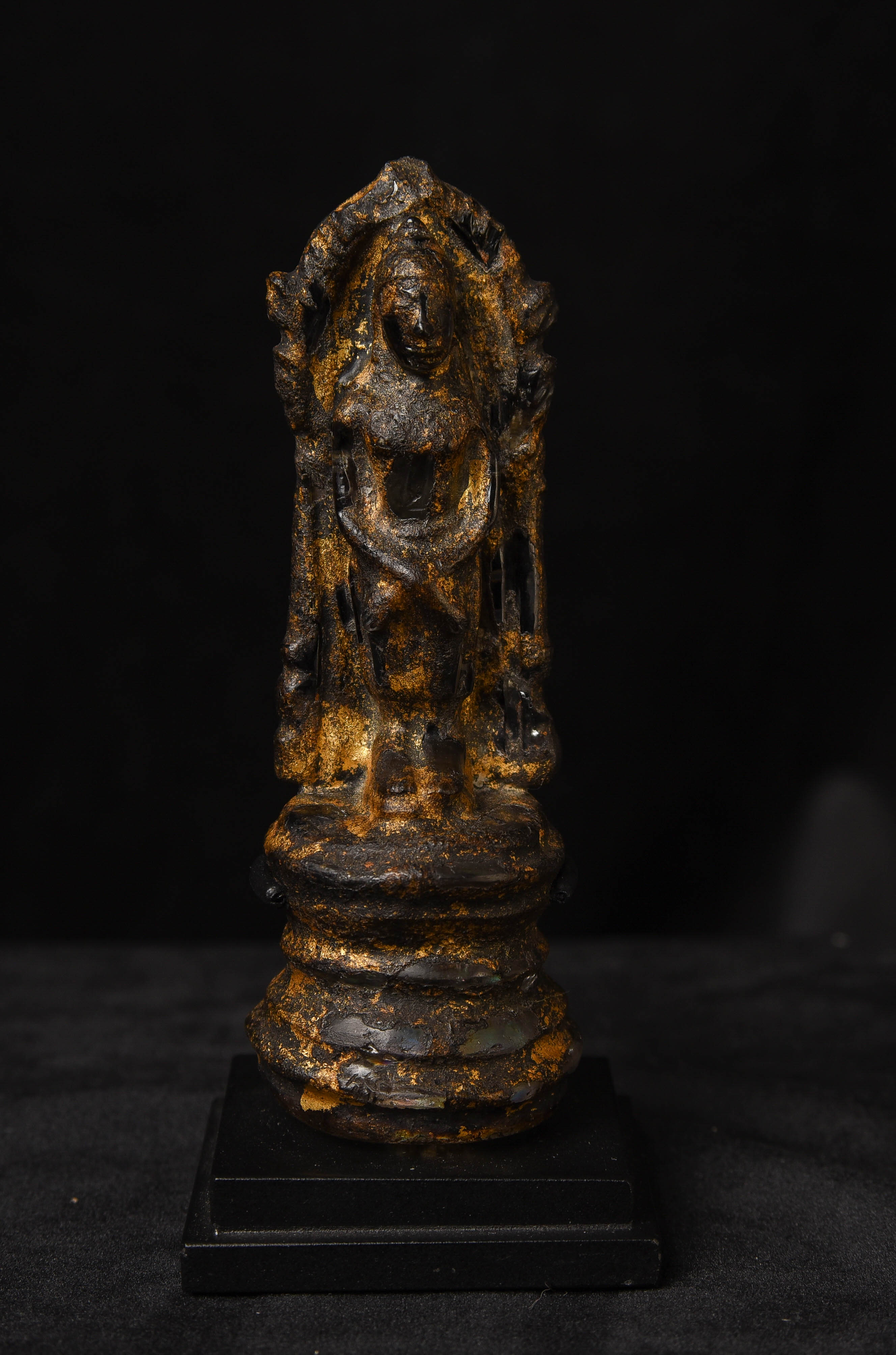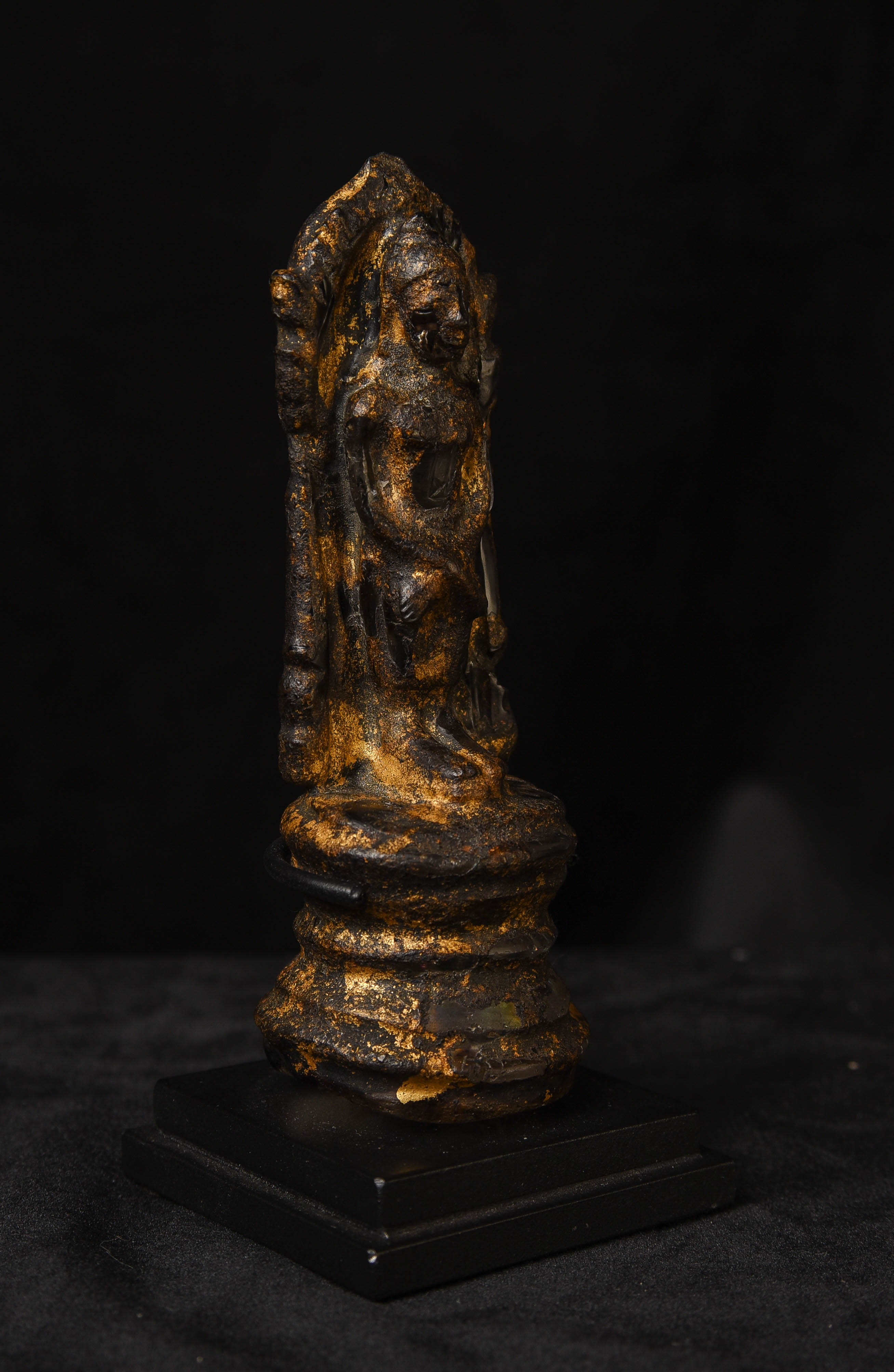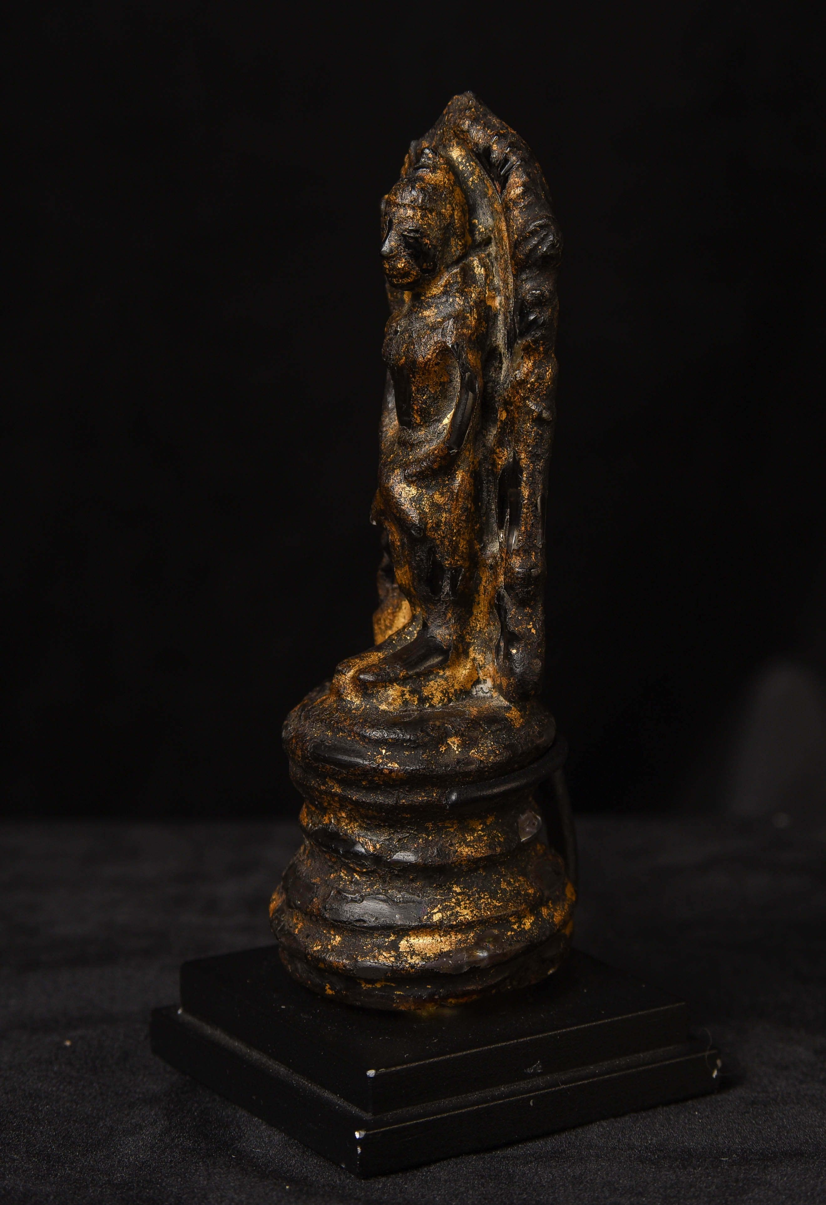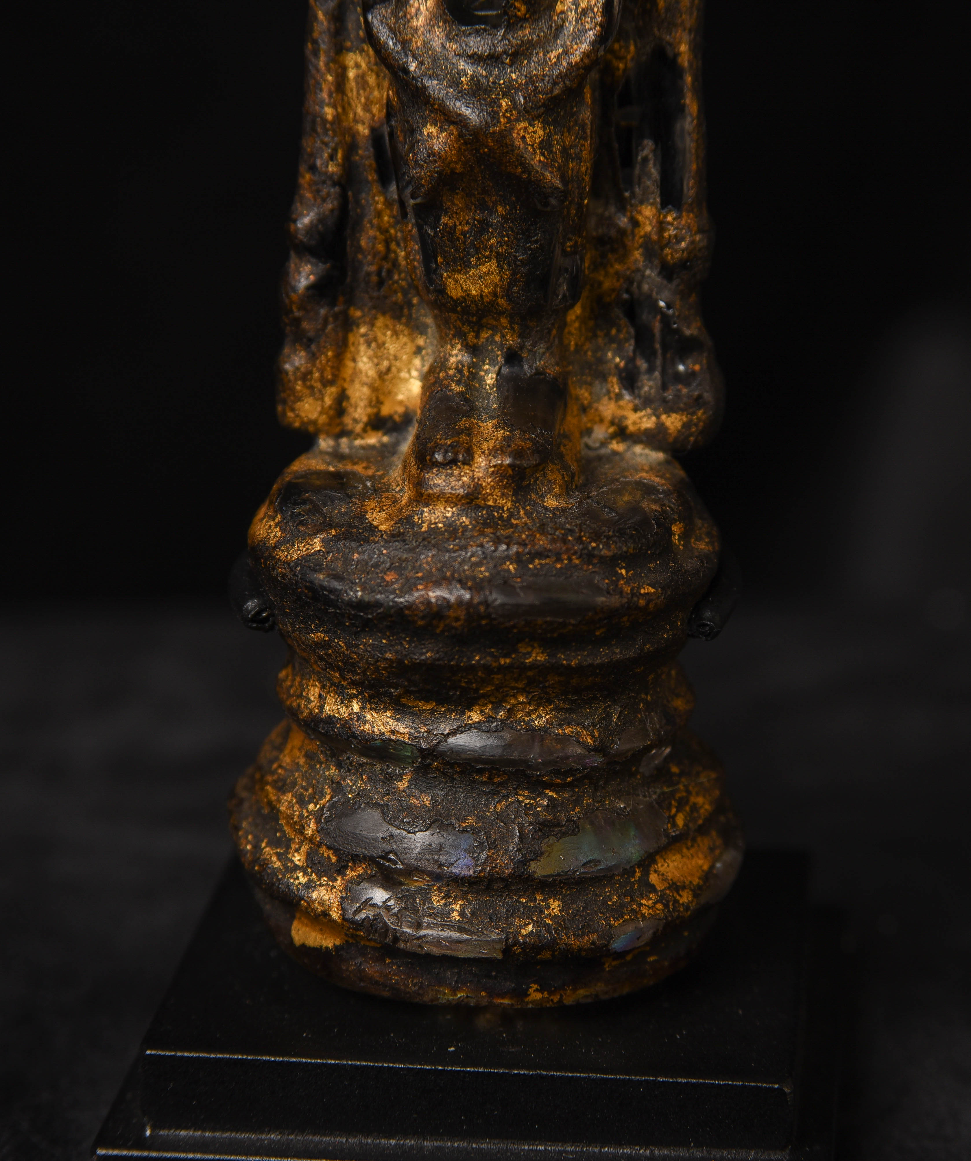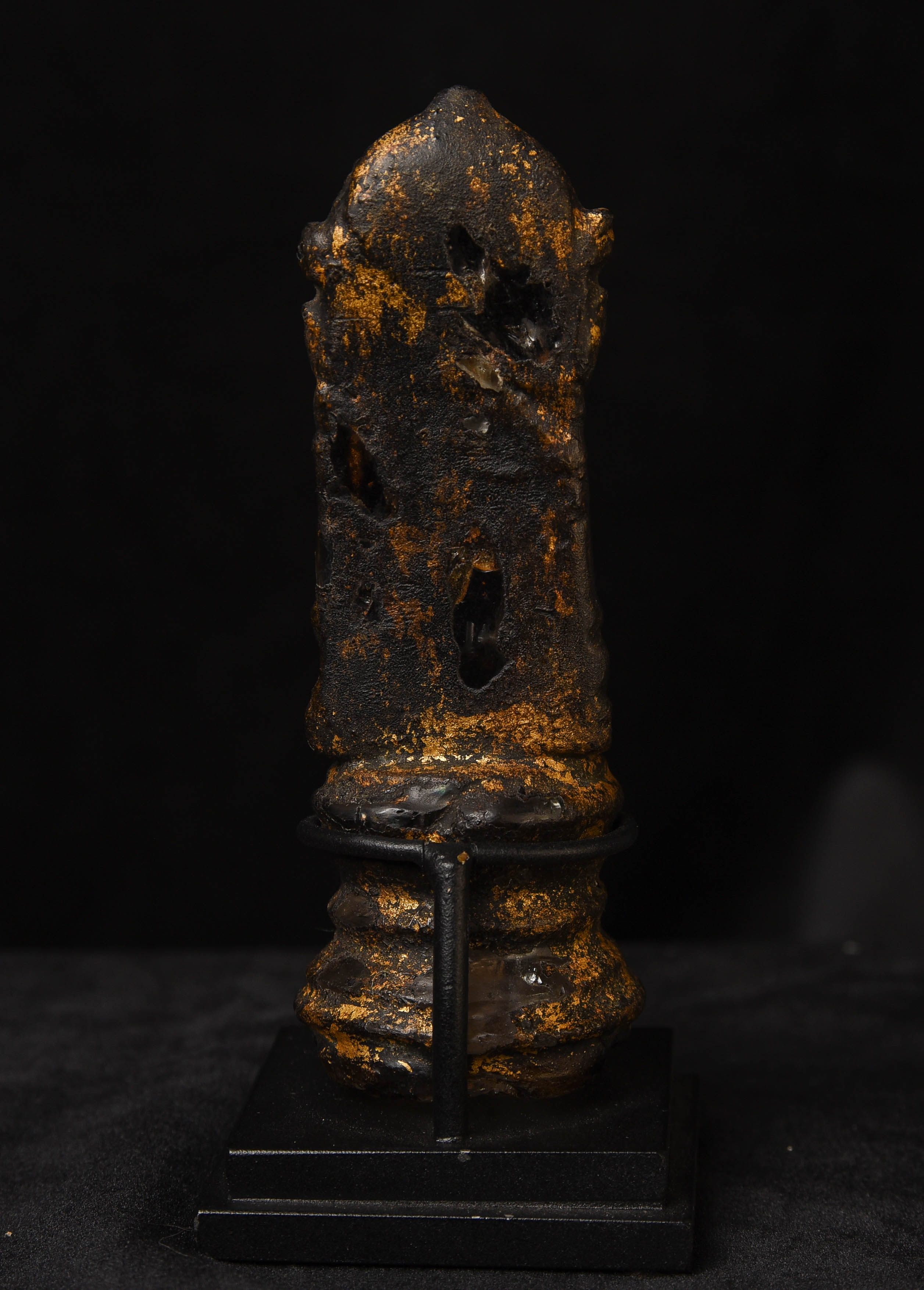Rare 17thC or earlier Thai or Laos crystal Buddha with the original lacquer and gilding. Some wear and loss as seen in the photos. Ive never seen another with an original surface like this. Very powerful piece.. Height: 4.75 inches tall not including the custom stand.