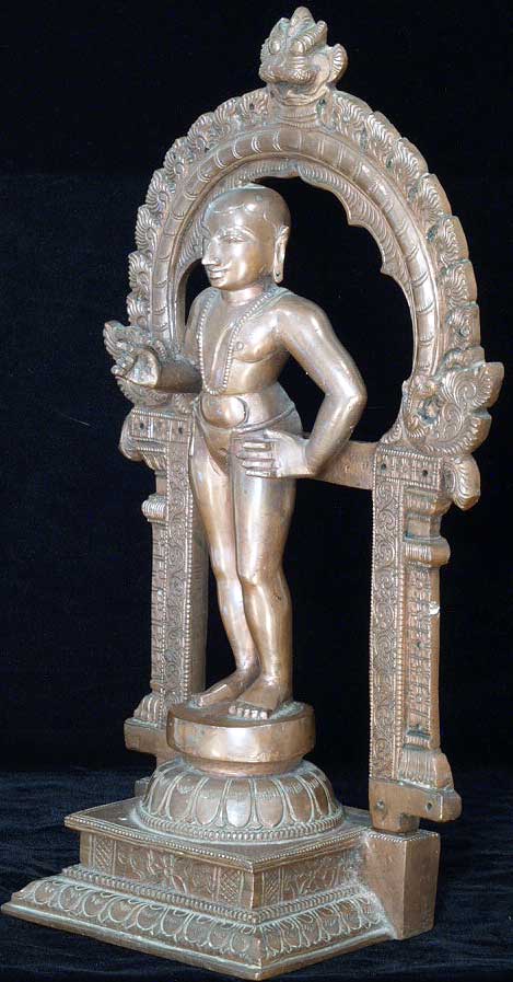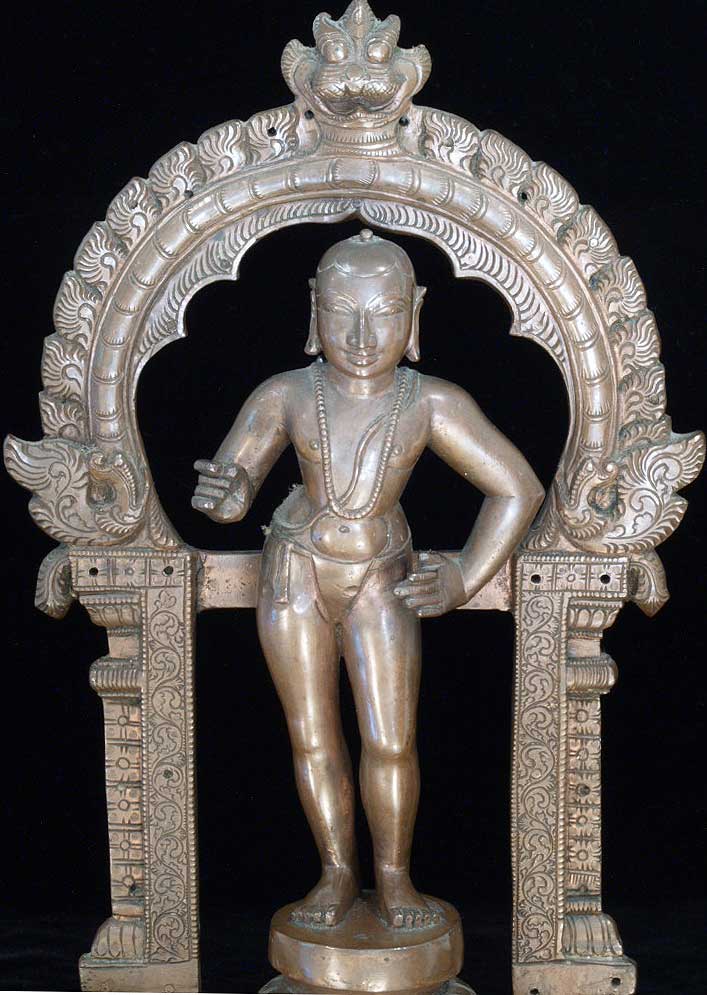 This is a beautiful Hindu Bronze which was cast in 3 parts. It is beautifully sculpted, cast and finished. It is a very good size: It stands almost 12 inches to the top of the mandorla when it is assembled, and it is close to 7 inches at the widest point. It weighs an impressive 8 pounds. Spend time looking at the photos.