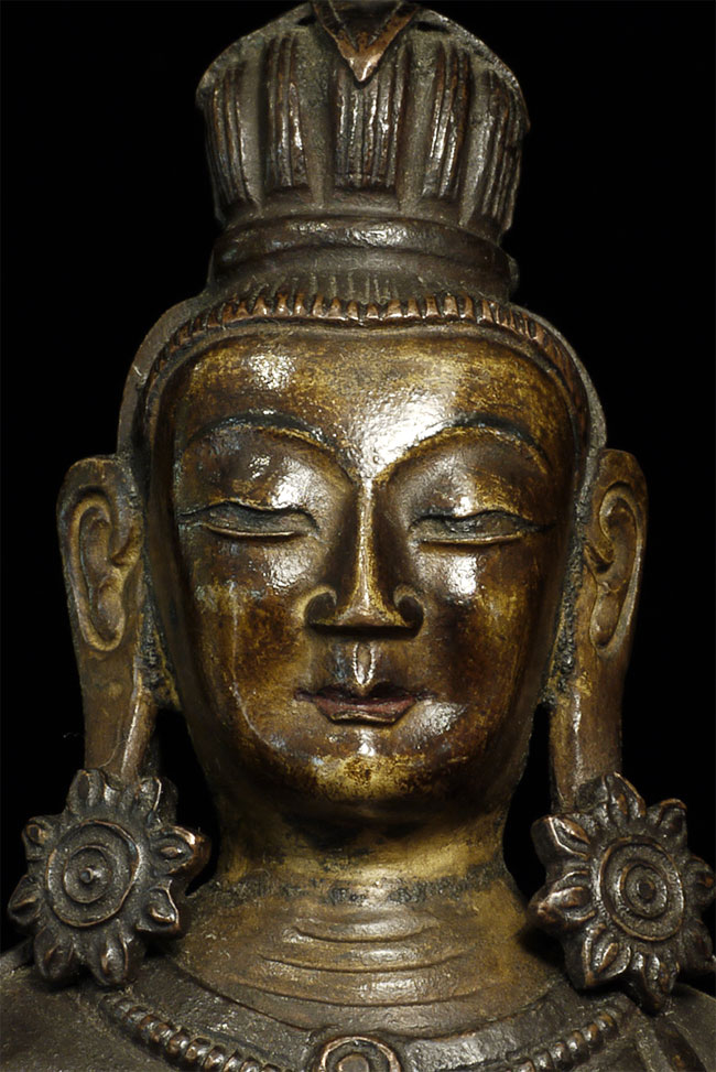 18/19thC copper Tibetan Bodhisattva. Outstanding! 7 inches tall.