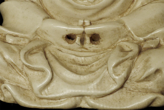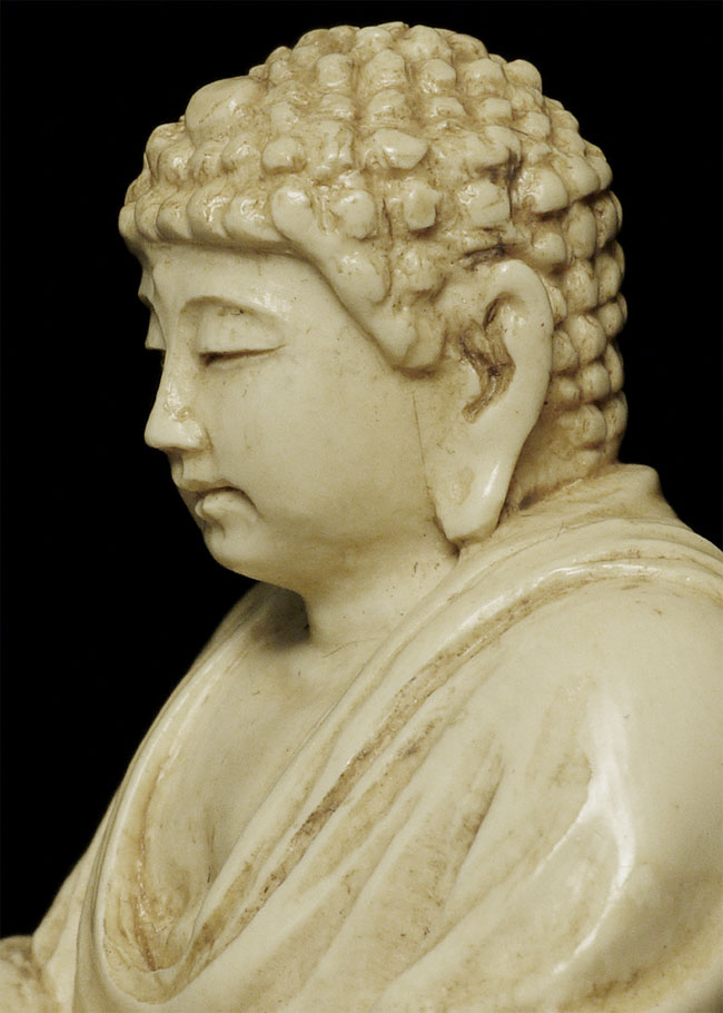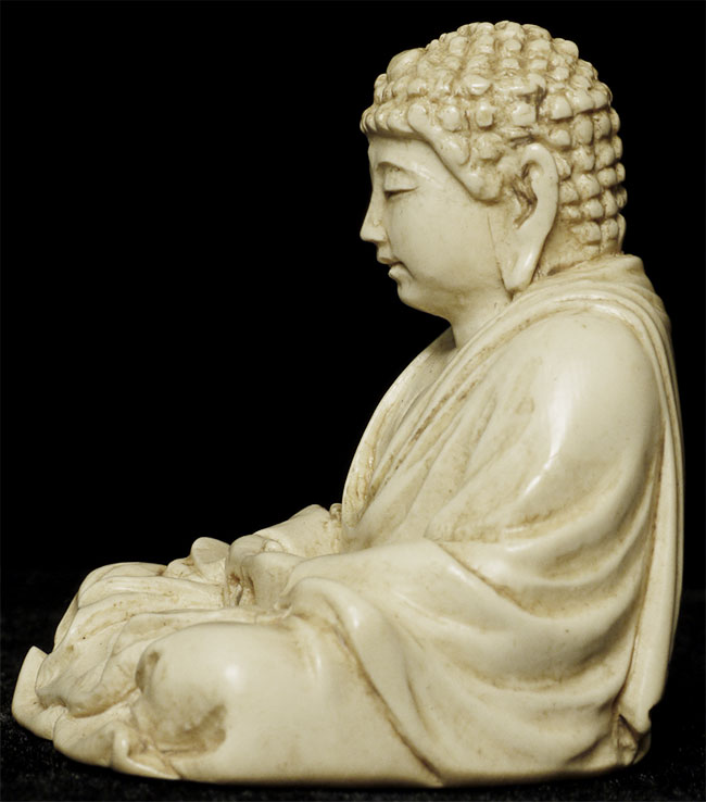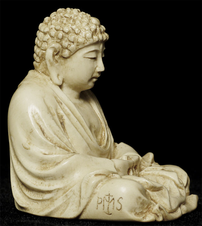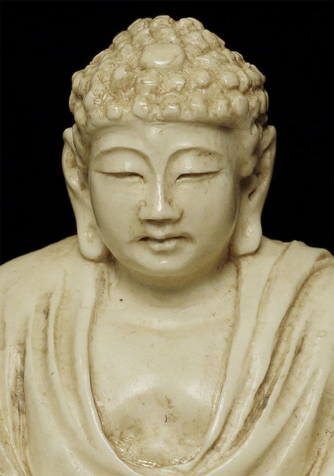 Antique Japanese (?) Buddha carved out of a composition material. 2 1/8 inches tall
