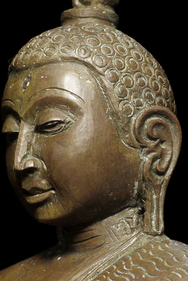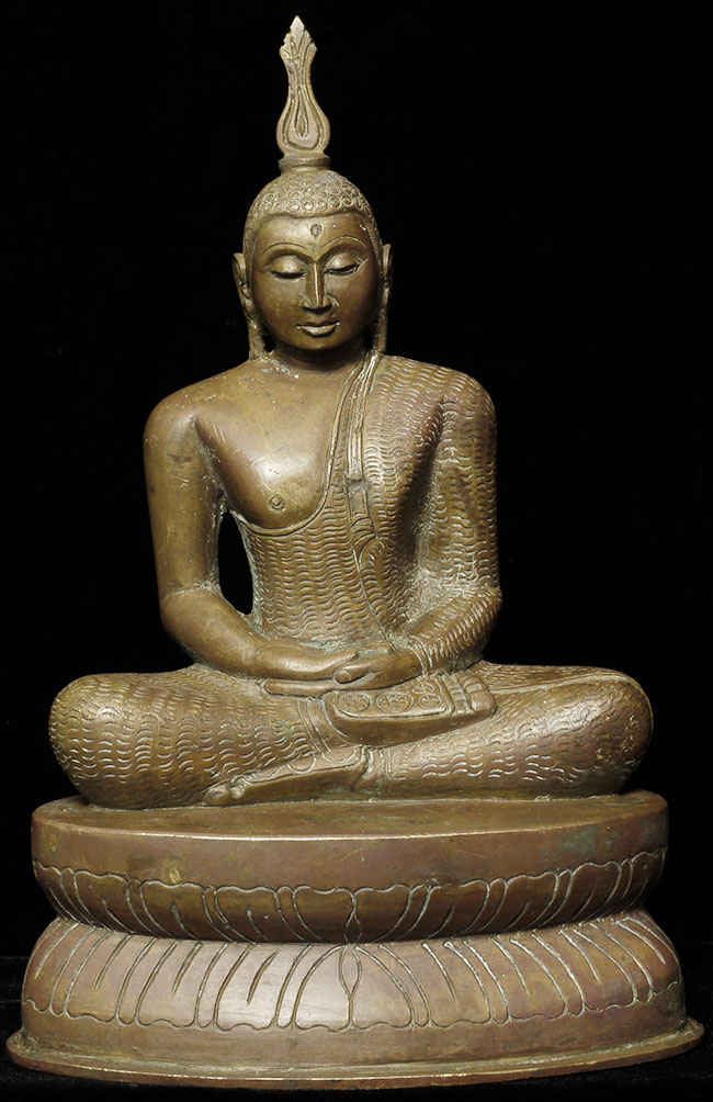 Very good Sri Lankan Buddha collected in the 1940's. Circa 1900-possibly earlier. Excellent size at 9 inches tall, and very heavy.