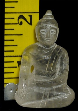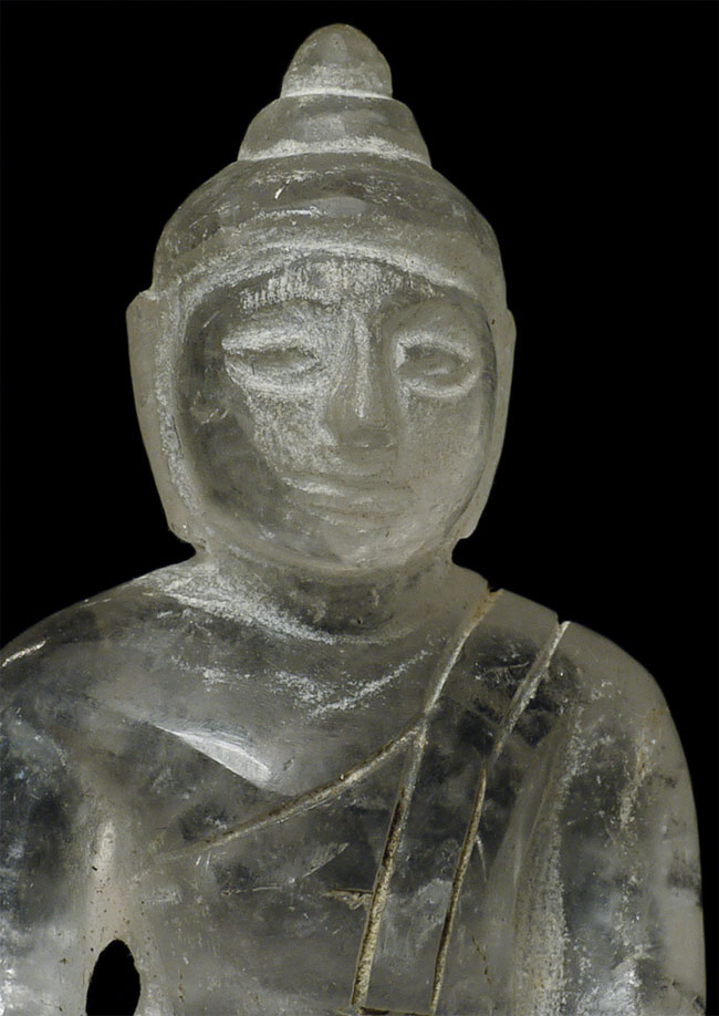 Antique Thai crystal Buddha. Hard to date, but likely early 20th century. Possibly earlier or later, though looks to be made with old tools in the traditional way, so so unlikely less than 50 to 75 years old. Sits 2 1/8 inches tall. Authentic crystal pieces (not made for tourists with power tools) are very time consuming to make, and take many years of training to get the face and "feeling" right, and are very hard to find in the market place,a as there are many Thai collectors.