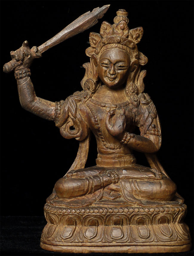 Vintage/Antique Tibetan Buddha of Knowledge (Manjushri). Sits4 7/8 inches tall.