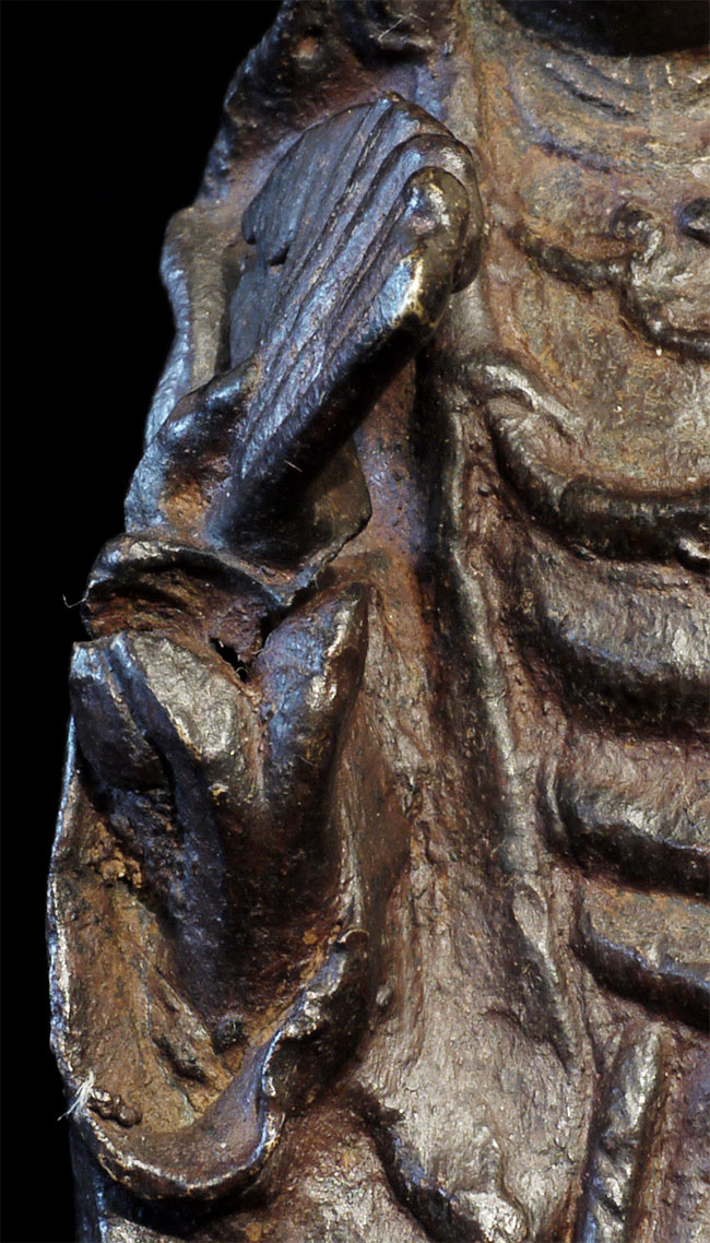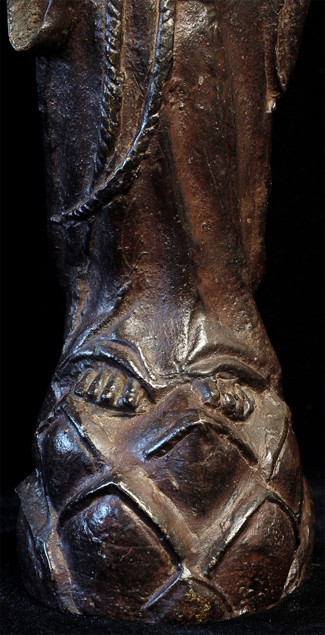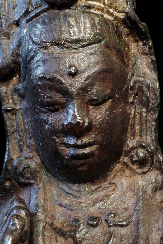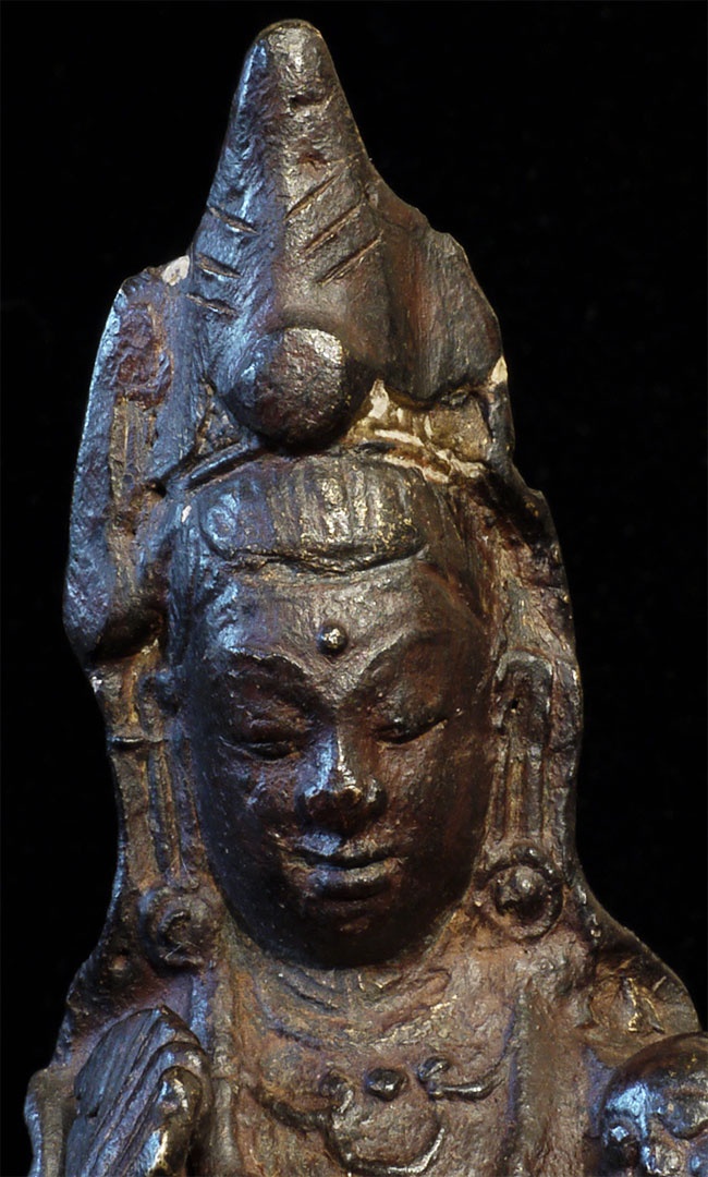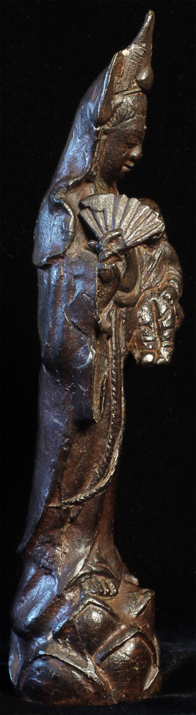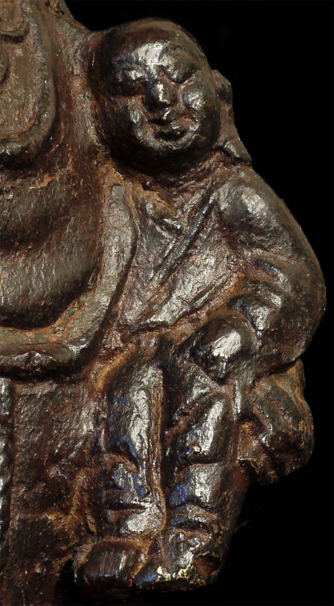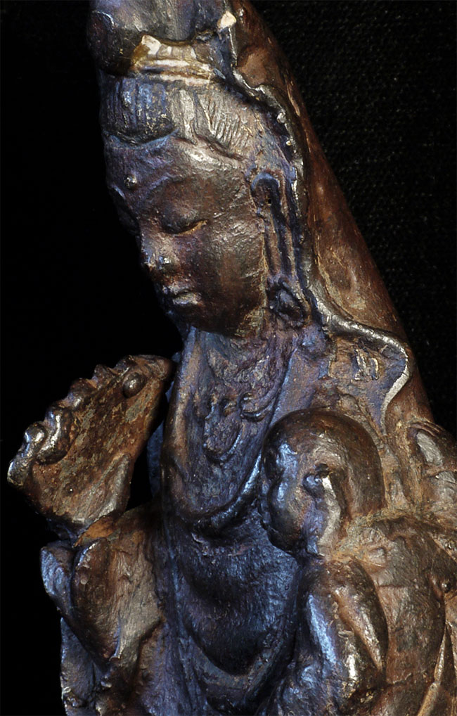 Delightful 19thC bronze Quanyin with baby. Stands 9 1/8" tall. Especially expressive faces, with a deep sense of connection between the two.