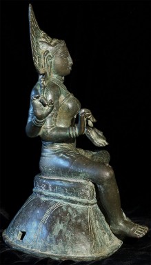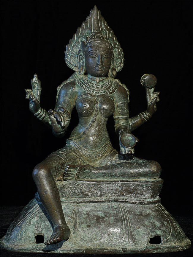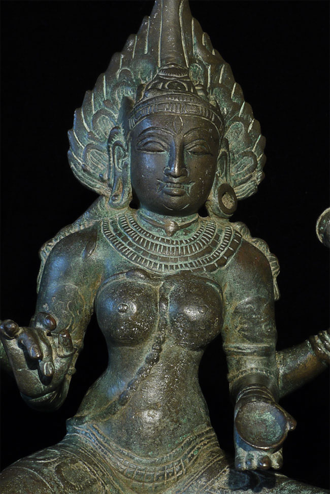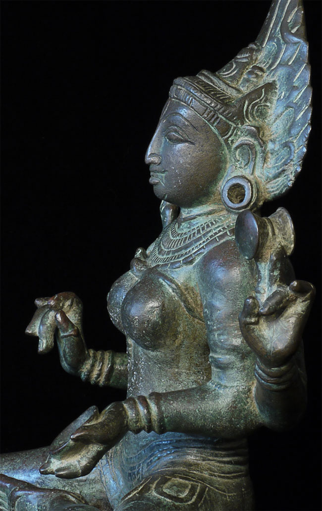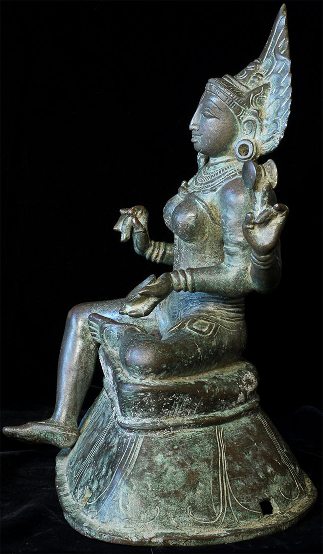 Early South Indian Hindu figure. Amazingly heavy. Looks to be 13/14thC, though I am not expert on this type of piece. Large at 15.25 inches tall, bottom is 12 x 8 inches. Powerful woman! From a European collection-collected in the 1980's.