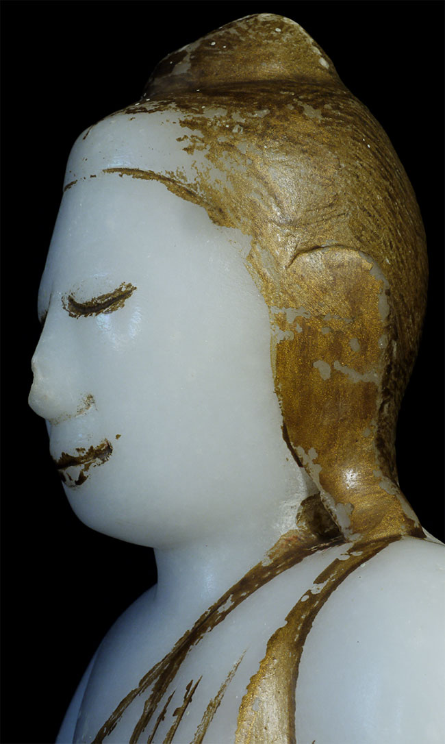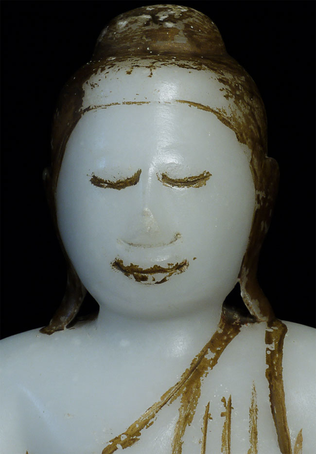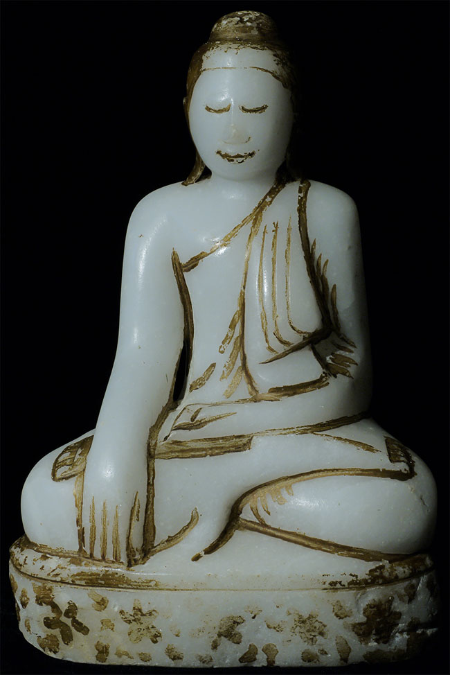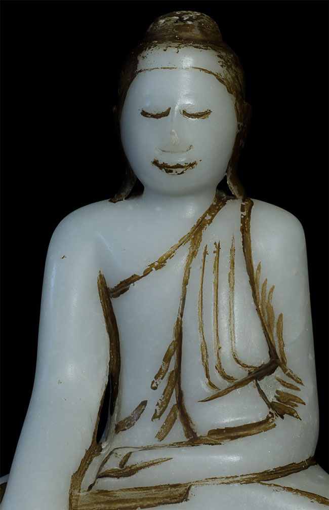 Delightful 19thC Burmese alabaster or marble Buddha. 11 tall x 7.5 wide x 3.5 deep