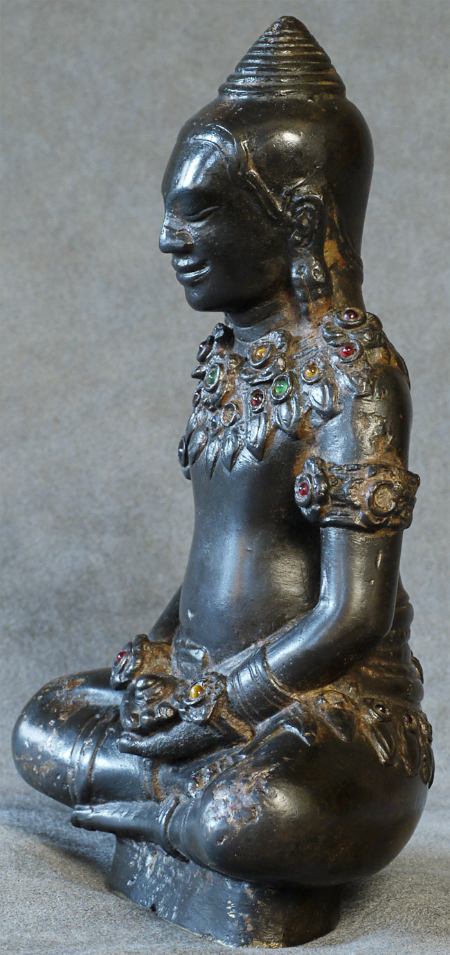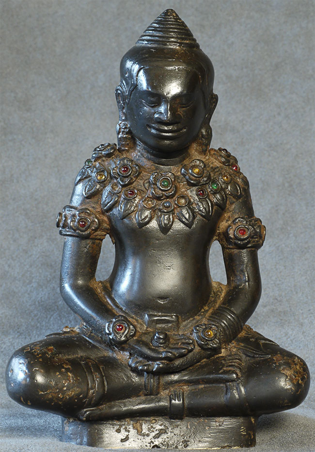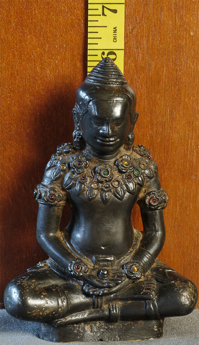 Magnificent antique Cambodian Buddha in an earlier style. The face is a classic Javerman 13thC type. "5 7/8 inches tall, 4 1/8 inches wide, 2.25 inches deep. I've not seen one like this before.