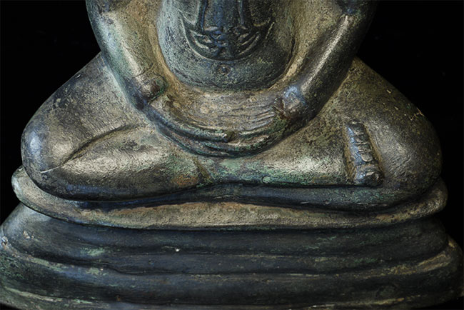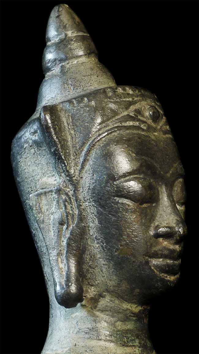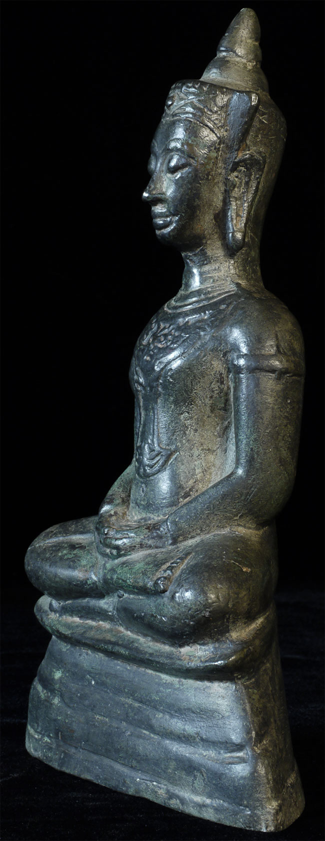 Ayuthaya style Buddha. Probably 19/20thC. From an estate in France. Sits 8.75 inches tall, 5 3/8 inches wide, 2 1/8 inches deep