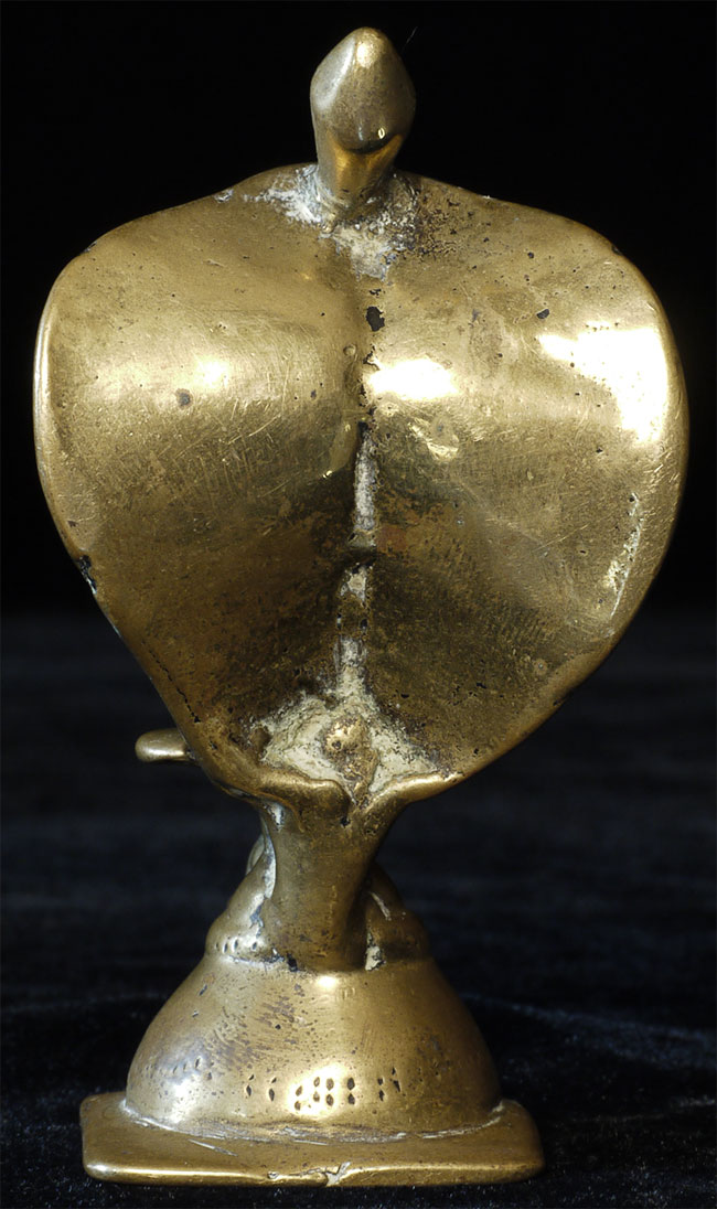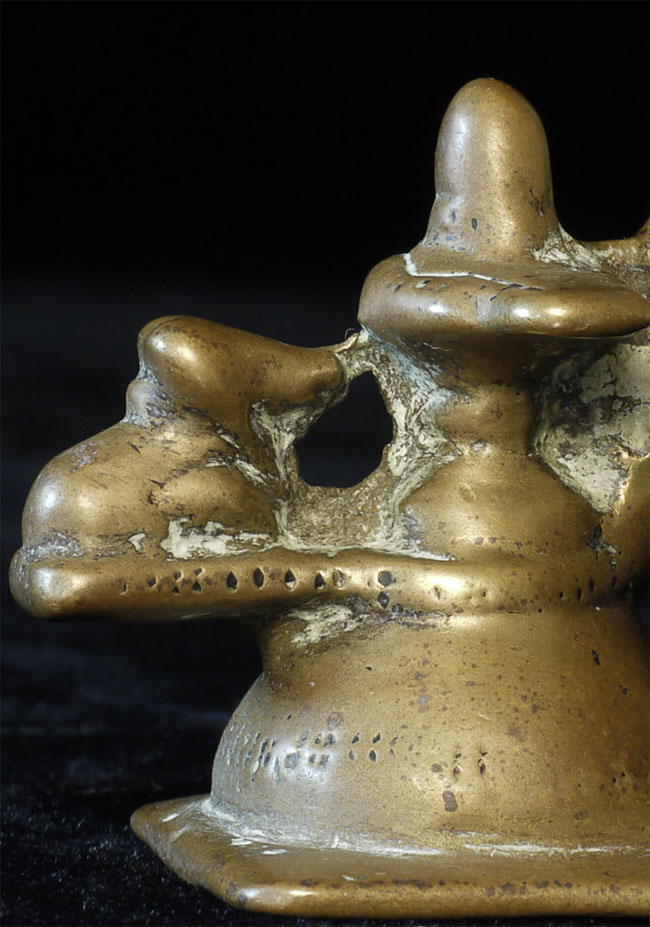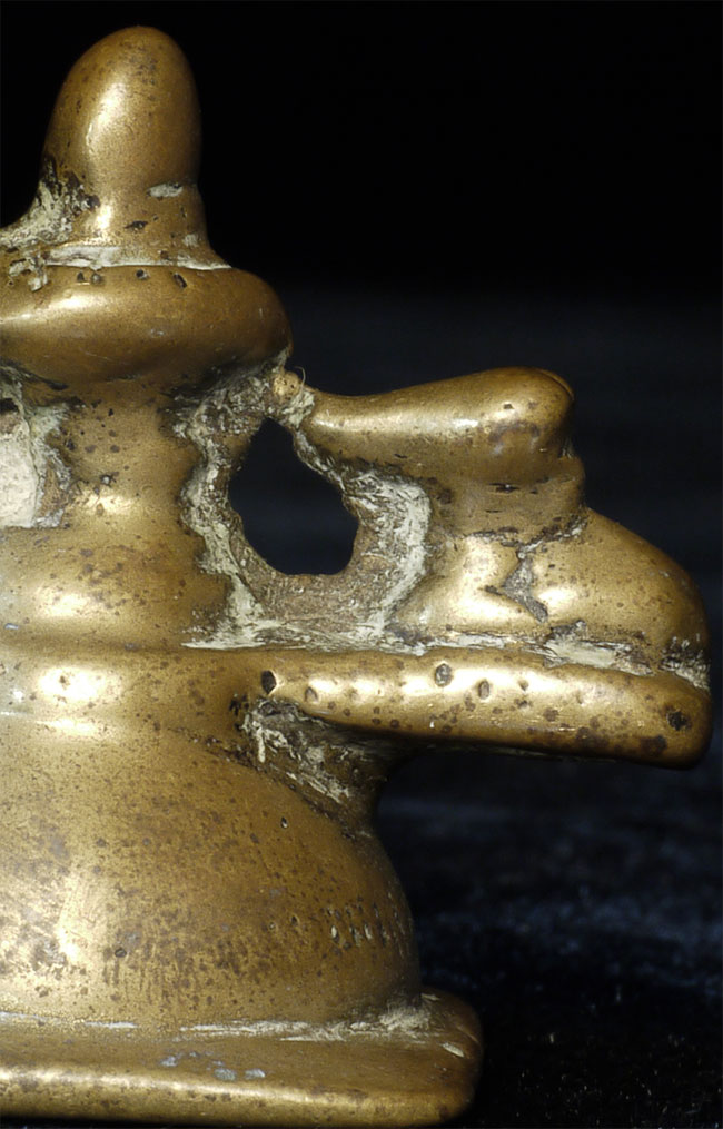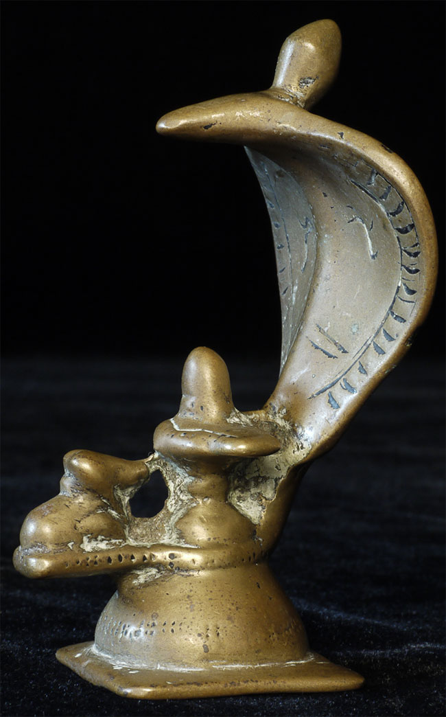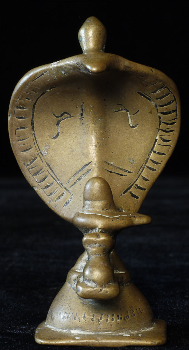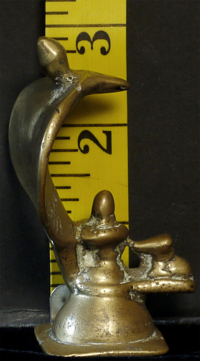Antique Shiva lingham with mini-Nandi. Sits 3 inches tall.