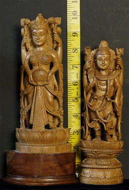 2 beautiful vintage/antique Hindu figures. The shorter is 8.5 inches tall,the other is 9.25 inches on its attached stand.