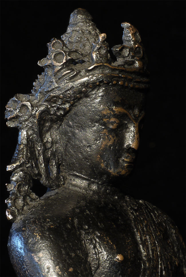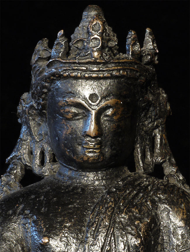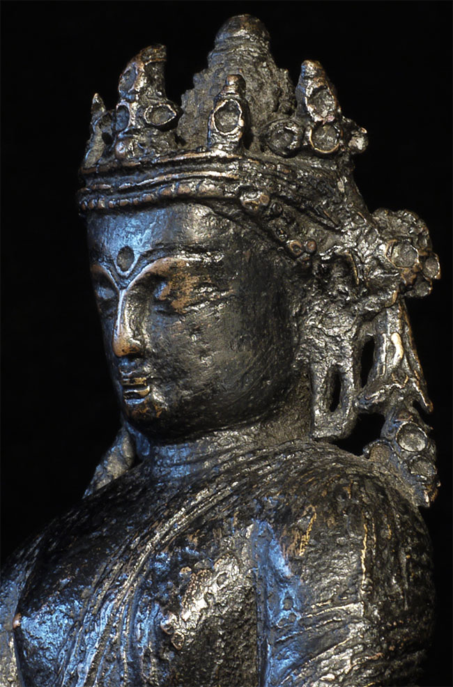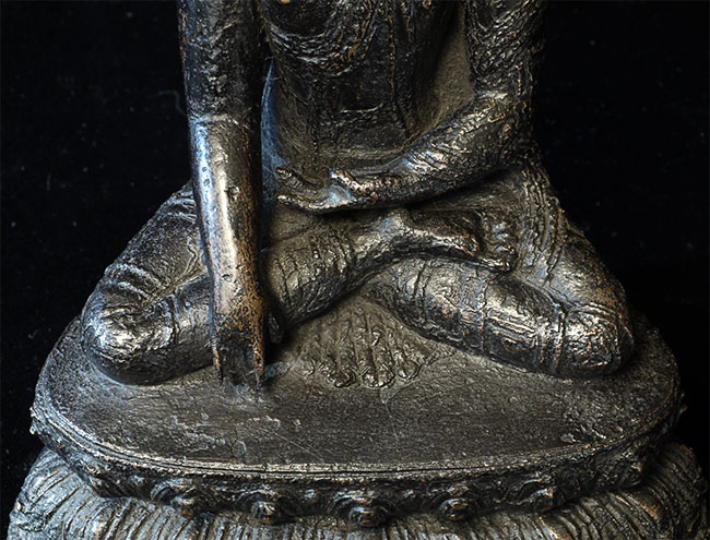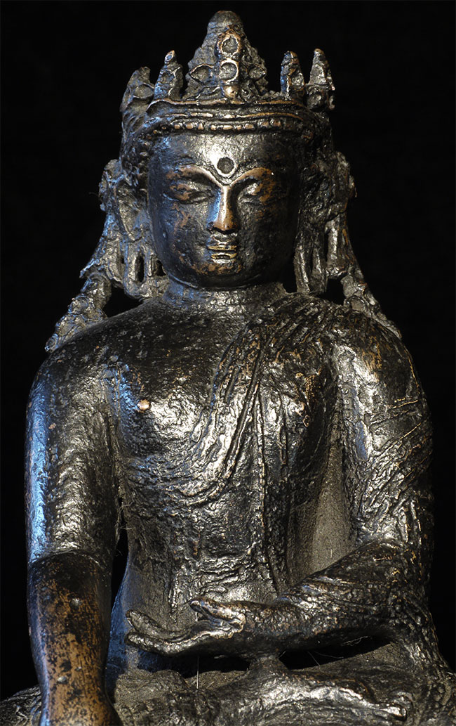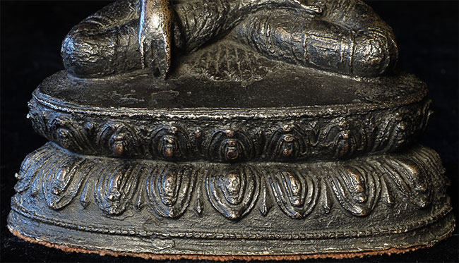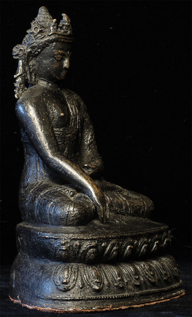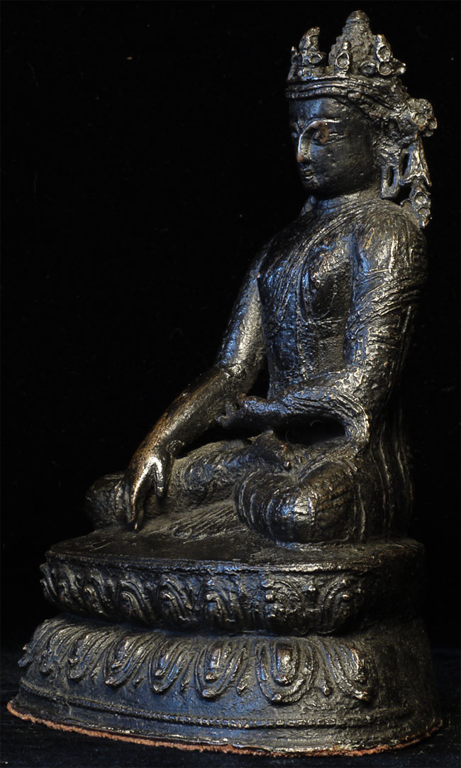 18thC or earlier Tibetan bronze Buddha. Bottom sealers some time in the early/mid 20th century. Deep presence. Sits 6 3/8 inches tall