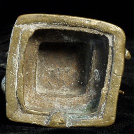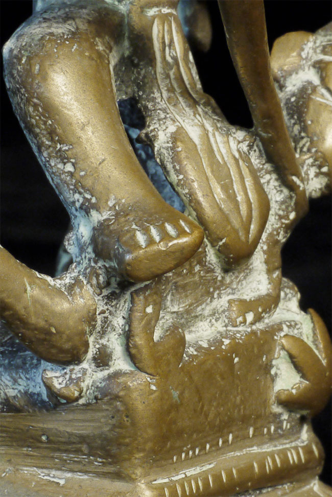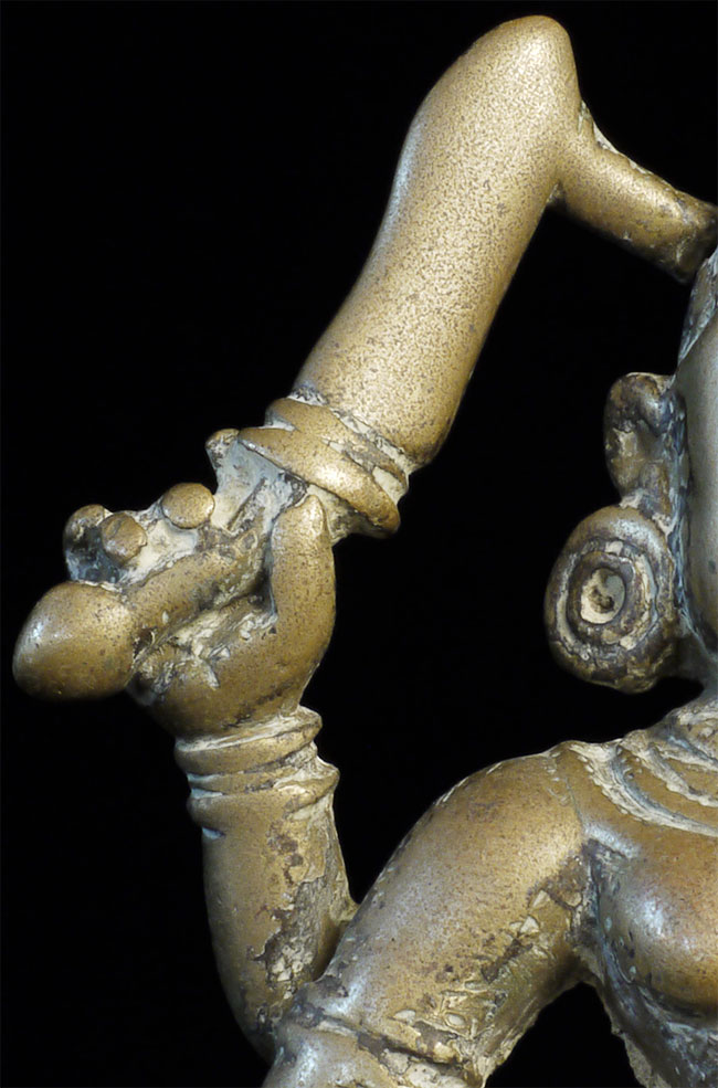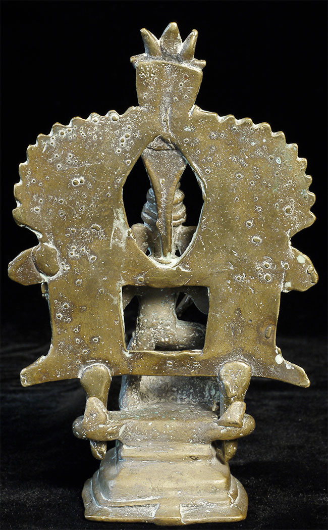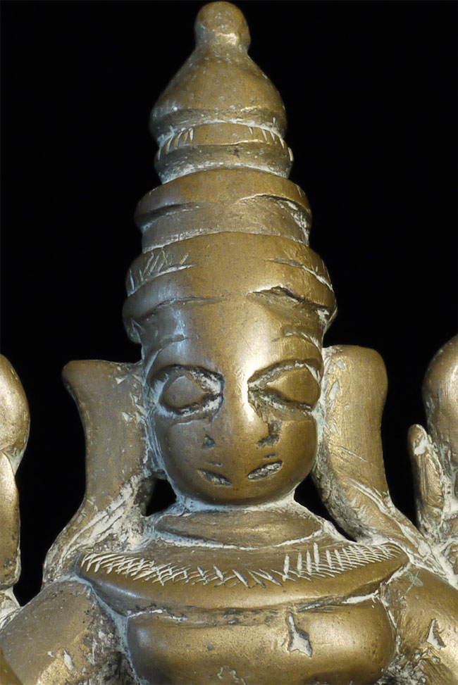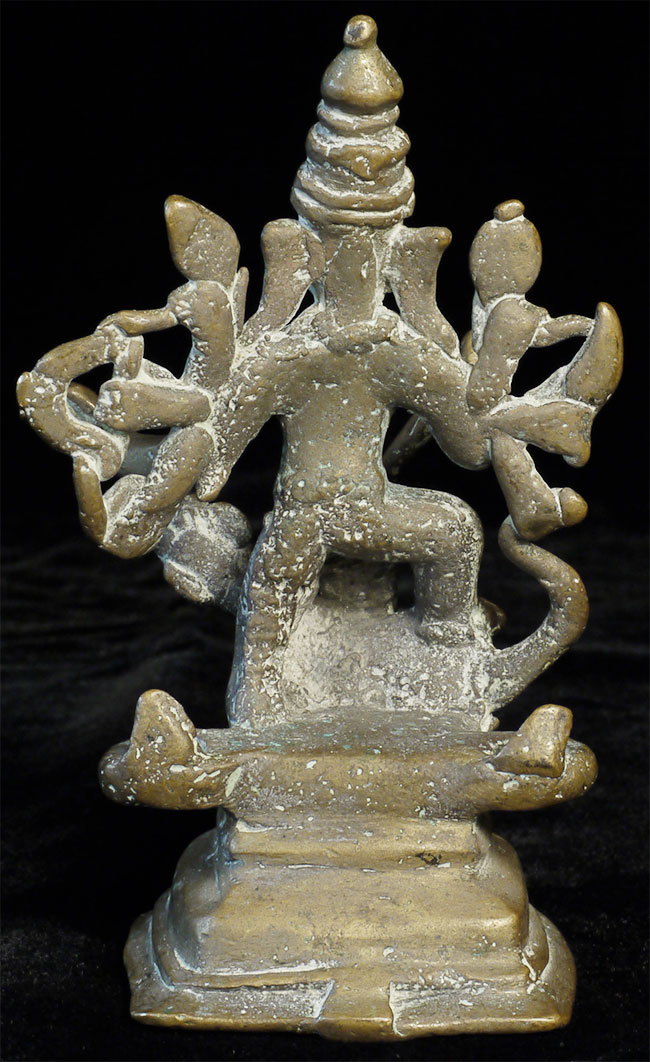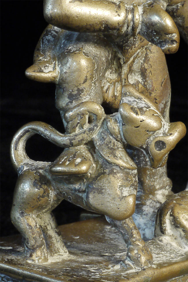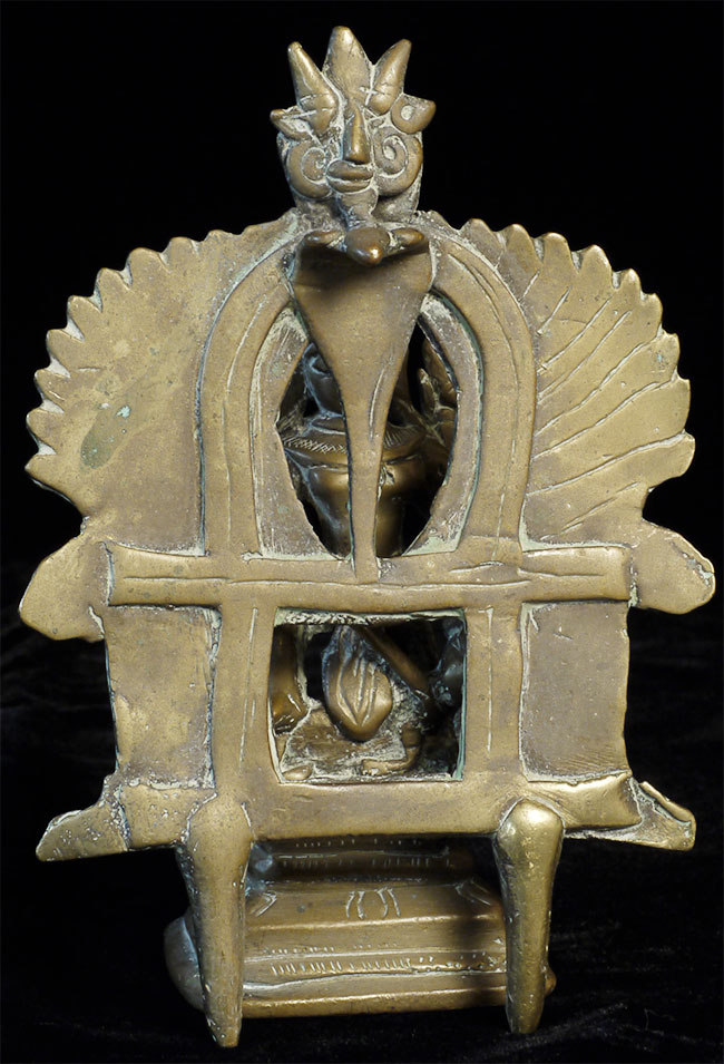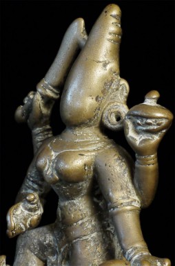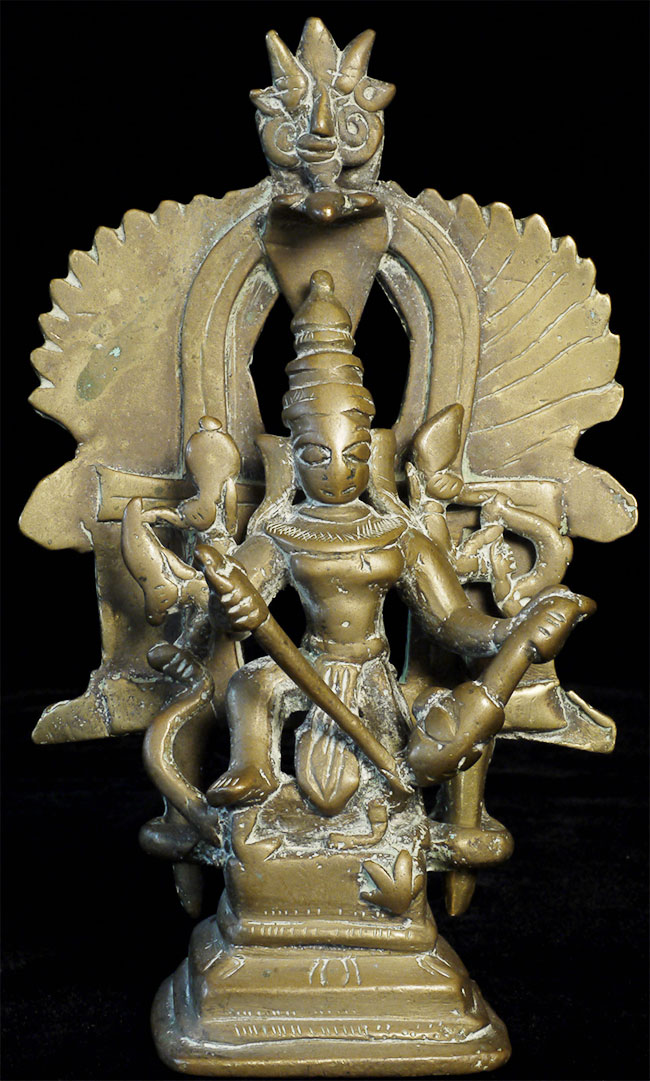 Pair of antique Indian Durga figures. Both with considerable ritual wear. One retains original backplate. Taller of the two pieces is 6 inches tall with backplate.
