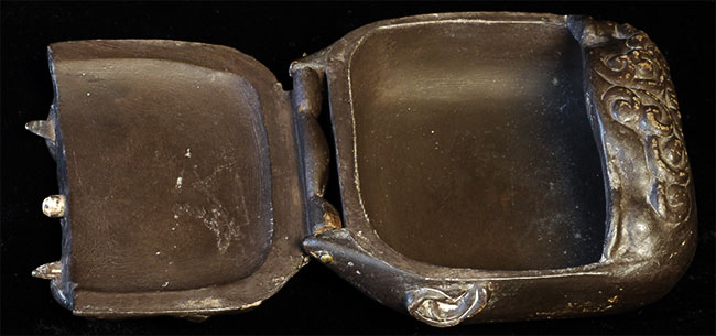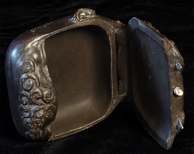 Special late 19thC Oni box made from a ceramic material. From the collection of a retired US diplomat. Sits 3.25 x 3 inches.