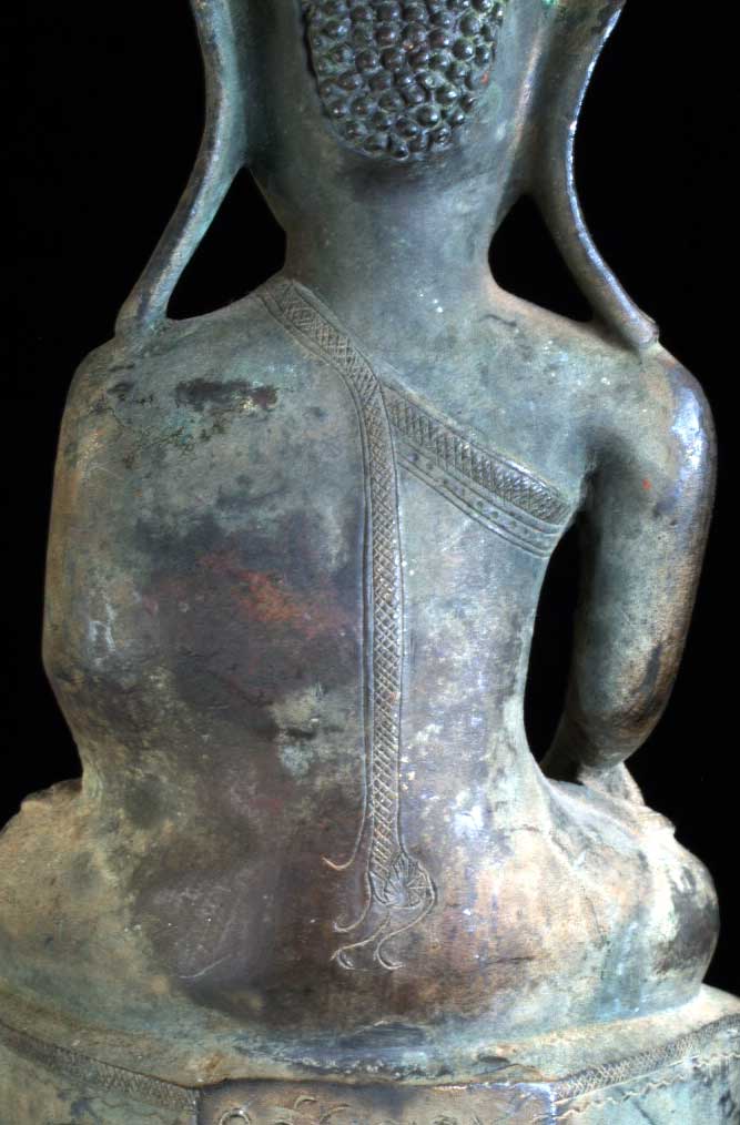 Very good Shan Bronze Buddha-nicely cast, great face, excellent condition. Overall, a very nice fellow. A very nice size at close to 10.5 inches tall, and extremely heavy. Very good detail work to the robes and base. There is an inscription on the back of the base These have become very hard to find in such overall fine shape and quality.