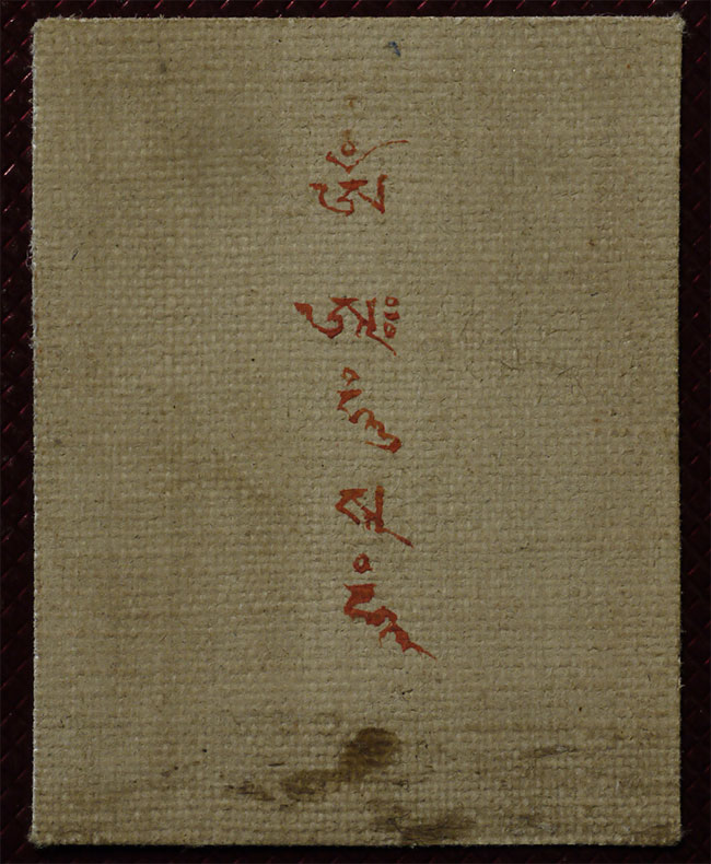 Miniature Mongolian painted thangka measures 1 x 1.5 inches.