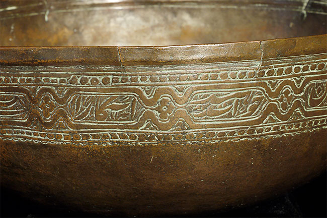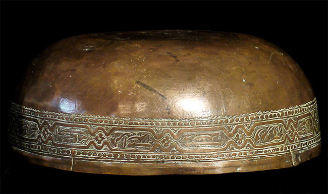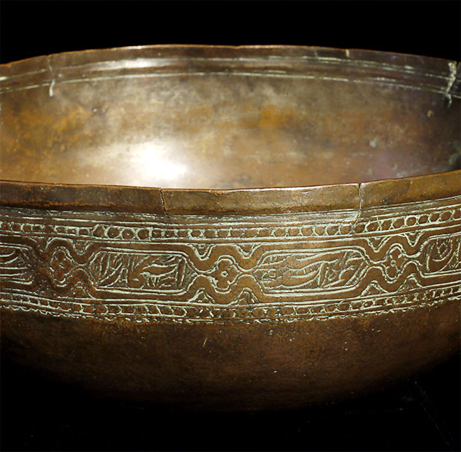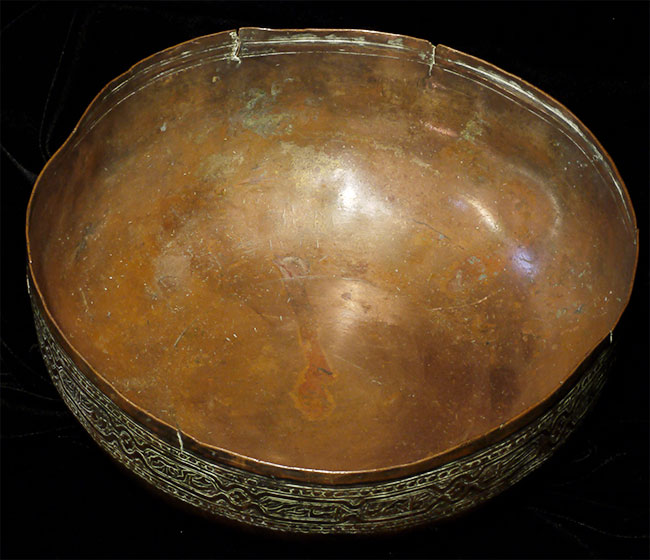 Early hammered copper bowl is 3.75 inches tall, top diameter is 9 inches