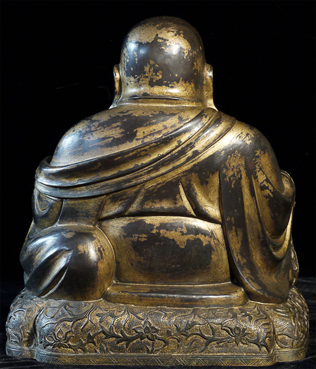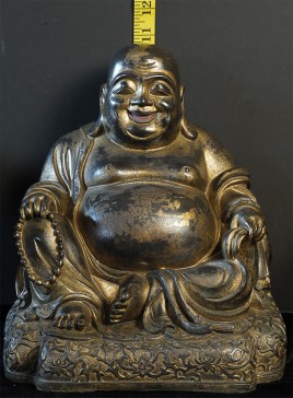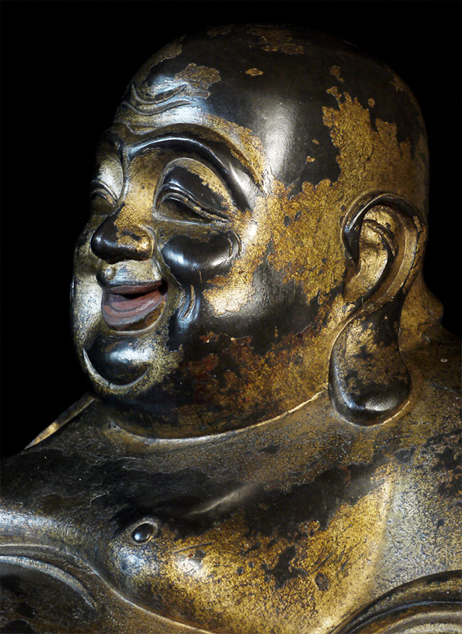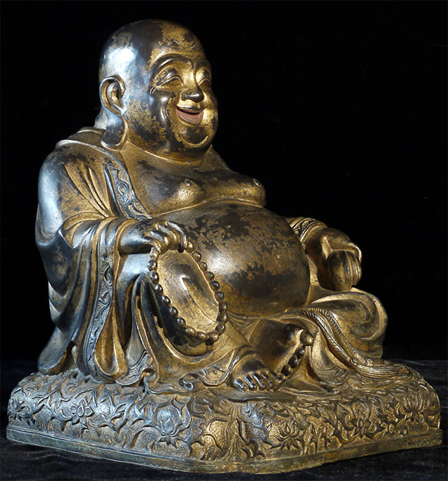 Superb antique Chinese bronze Hotai. Very high quality casting. Looks to be 19th/early 20th, though I am unsure how to date this type. Previous owner believed he was 18thC Japanese, as he had been reportedly purchased in Japan in the late 1940's or early 1950's. Looks Chinese to me. Quite heavy. 10.5 inches tall, base measures 9.5 x 9.5 inches